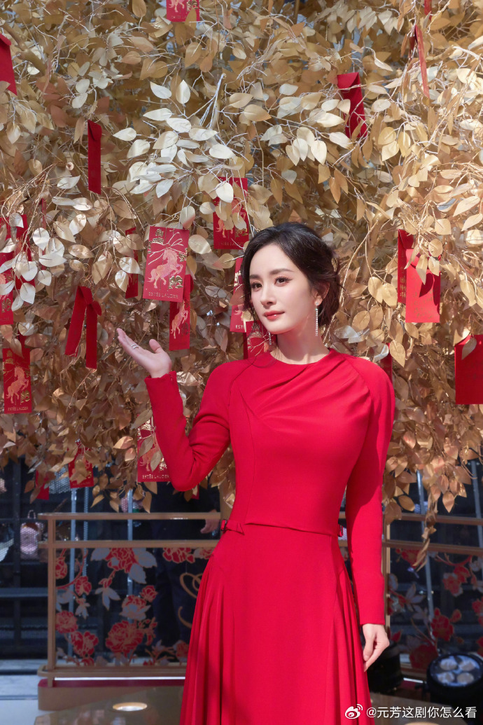 赵丽颖长卷发好美萌杨幂赵丽颖活动生图赵丽颖沁园年会 妈幂红裙权威感爆棚,现场温柔