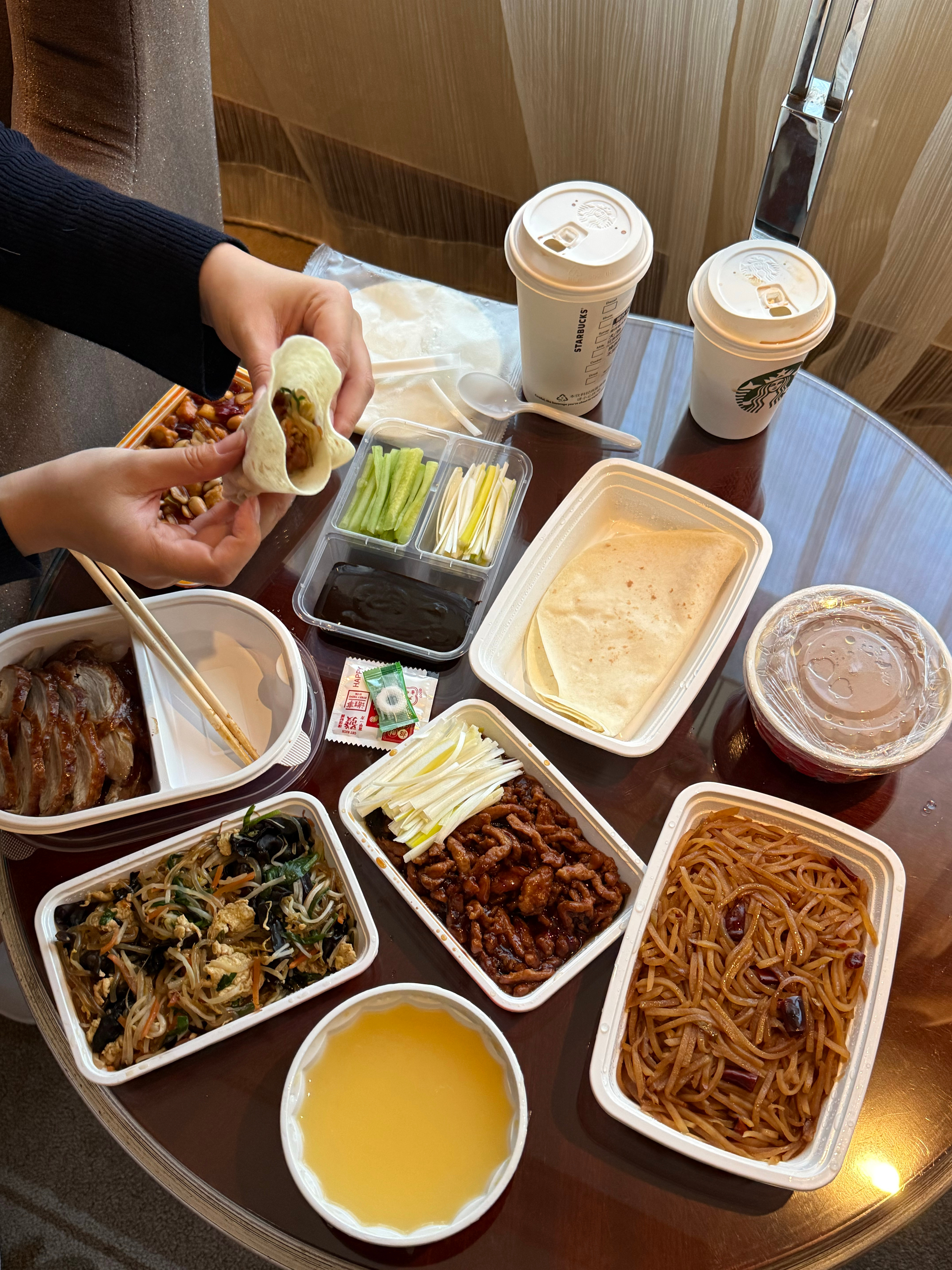 来北京当然得吃片皮烤鸭和春饼啦(ps:北京连外卖柜都加工成保温箱了,可见有多冷)