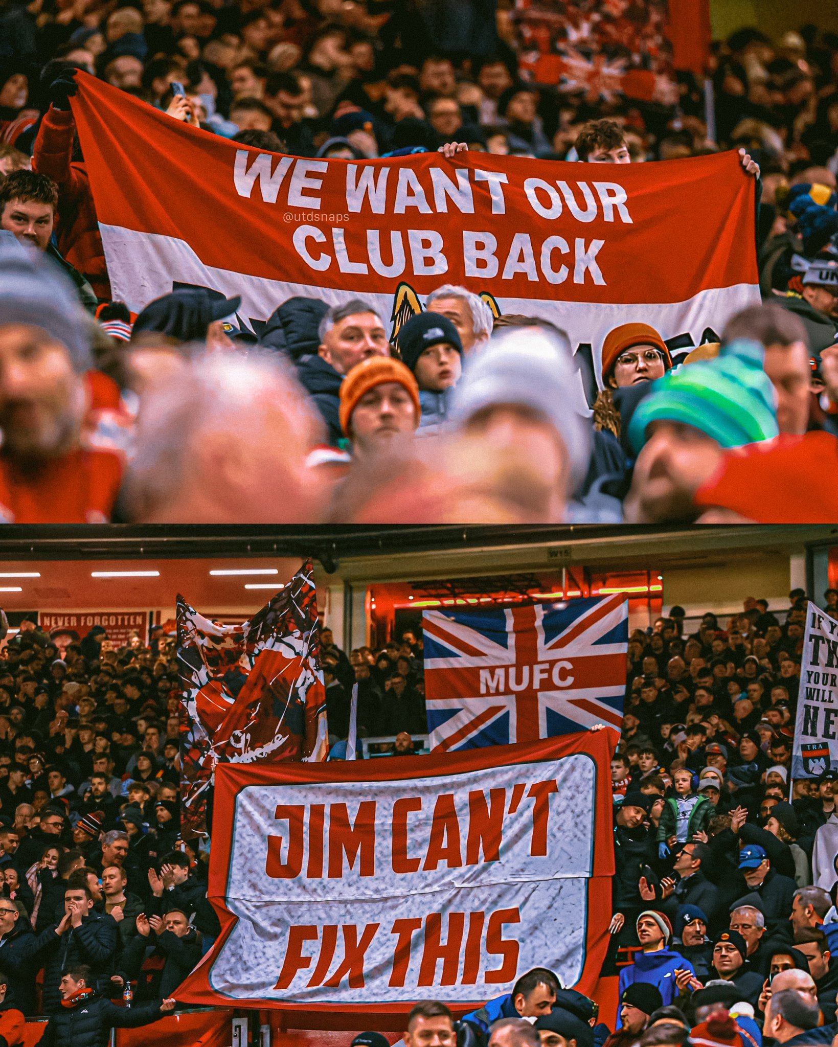 曼联球迷组织The 1958将在2月1日,曼联主场vs富勒姆前组织游行,抗议格雷泽家族和拉特克里夫的英力士集团。他们的4点理由:1. 品行崩塌。高层内斗,随意解雇教练,董事会不懂球,无长期计划,领导力极度缺乏。2. 长期欠债。格雷泽和英力士都没有偿还曼联债务,只有空口承诺,曼联财政濒临红线。3. 割球迷韭菜。拉爵没有和球迷组织交流就单方面涨票价,动摇了曼联作为工人阶级俱乐部的根基。4. 12年连续摆烂。拉爵接管竞技部门以来,上赛季是英超历史最低排名;本赛季两项杯赛一轮游,没有欧战。滕哈赫的续约过于随意,阿莫林的解雇系威考骚操。管理层完全失职。The 1958的口号:曼联烂透了,但球迷们很清醒。曼联足球俱乐部