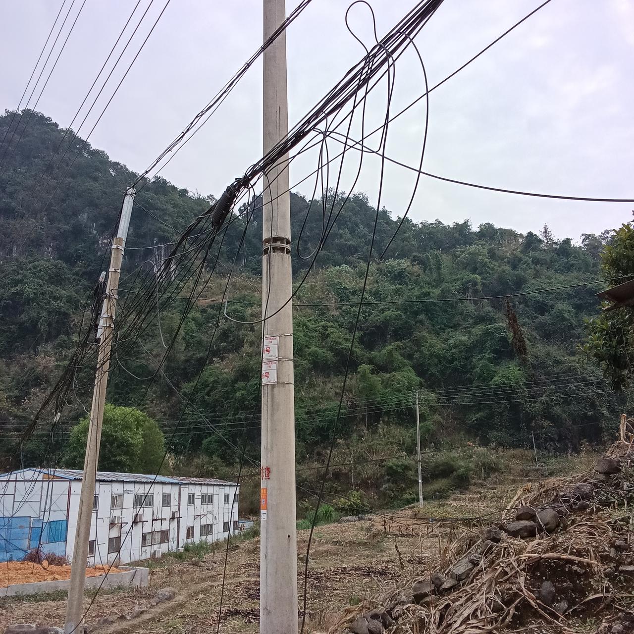 偏远山区电线杂乱无章 问管理部门:该如何解决 走在巴马各个村屯,经常可以看到数10条电线捆绑在一起,有的甚至垂落下来。有的已经断开(见图片)。 这样的情况会不会影响安全?抑或 当前没有安全隐患,会不会在未来的某一个时间点或者下雨刮风后垂落下来的断开的电线会造成不安全事故呢? 我是一个多事之人,若看到一些问题,就想反映出来。 可能的话,我想@ 广西 巴马县电业局。 希望可以规划一下各个建筑物的用电情况,统一做好管理[祈祷]