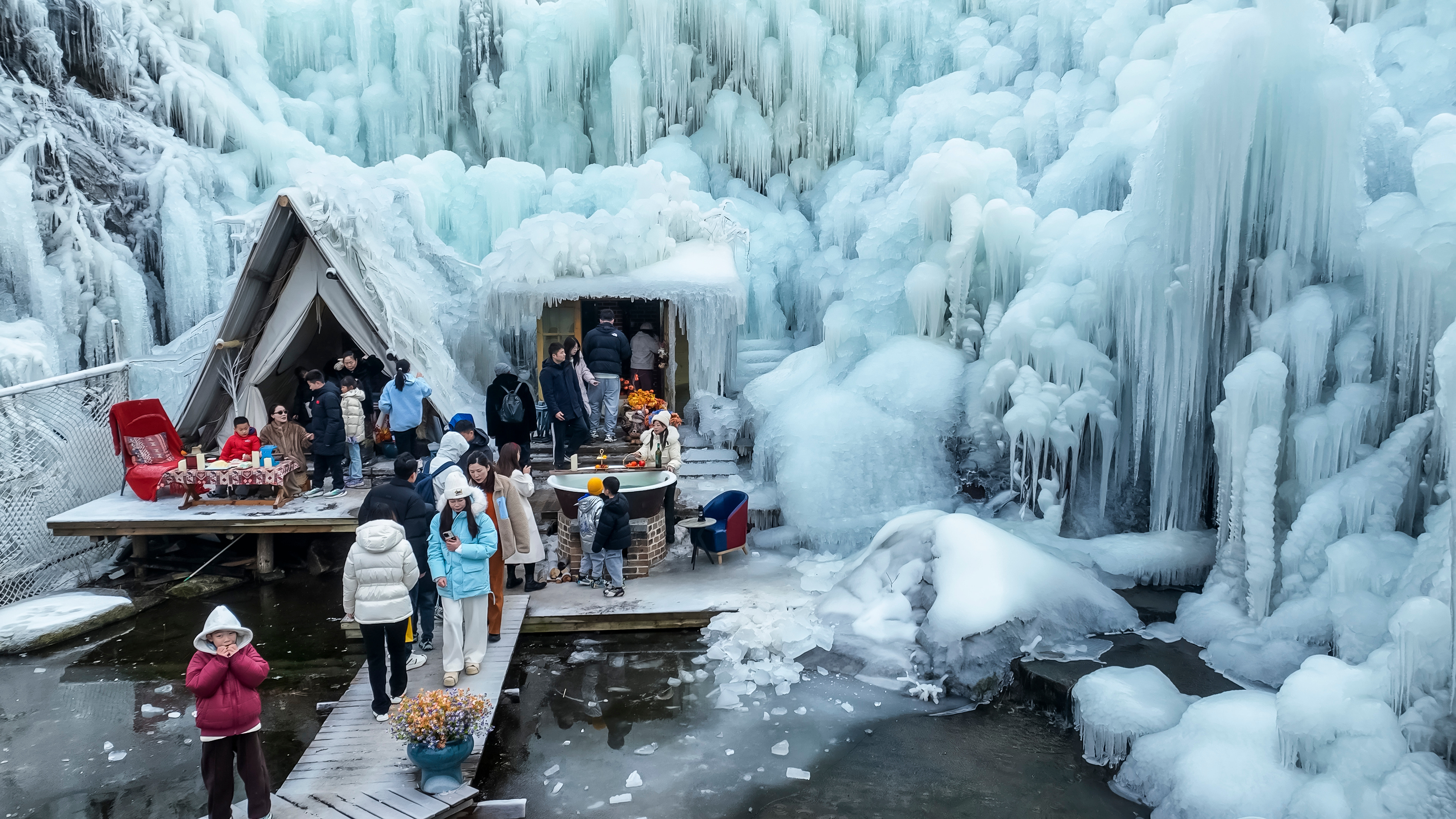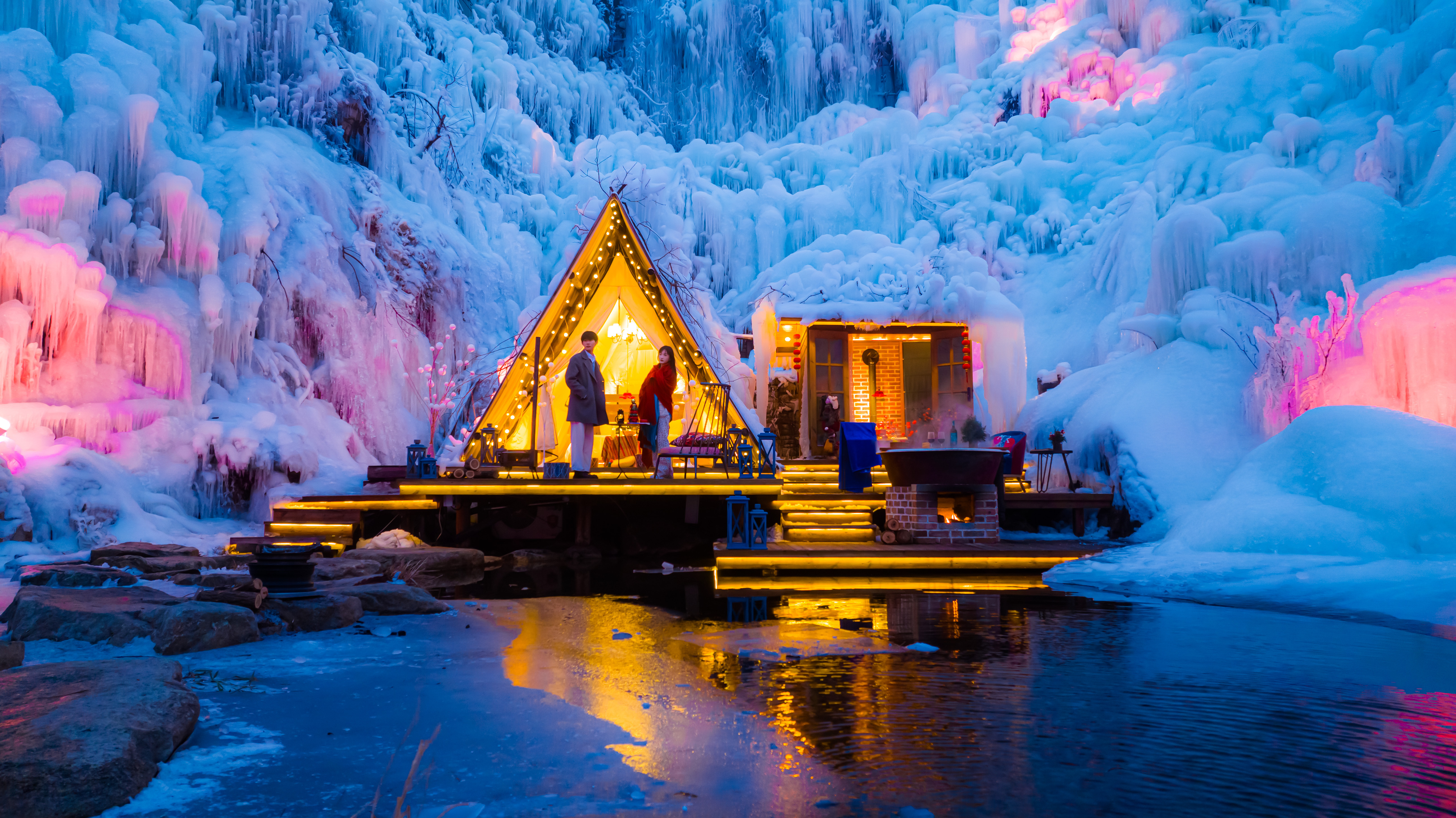 冬游齐鲁欢乐过年 雪景配炉火,是自然与人文的美妙共鸣!九如山巧妙地将自然馈赠的冰雪奇观与人文营造的围炉暖意融合,打造出了这一份独属于九如山的浪漫。九如山冰瀑围炉节正火热进行中,活动以上百种形态各异的火炉矩阵与震撼全网的梦幻冰瀑奇观 为核心载体,成功打造出 “几步一火炉,百米一木屋”的独特场景。为游客们带来了极致的感官享受,更以 “用冰瀑围炉的方式感受济南的浪漫” ,重新定义了山东冬季旅行的浪漫内涵与温暖体验。寻美山东
