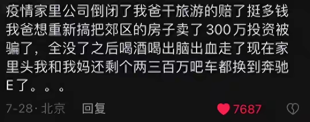 家道中落是何体验?网友:90年坐桑塔纳的少爷,如今睁开眼全是债