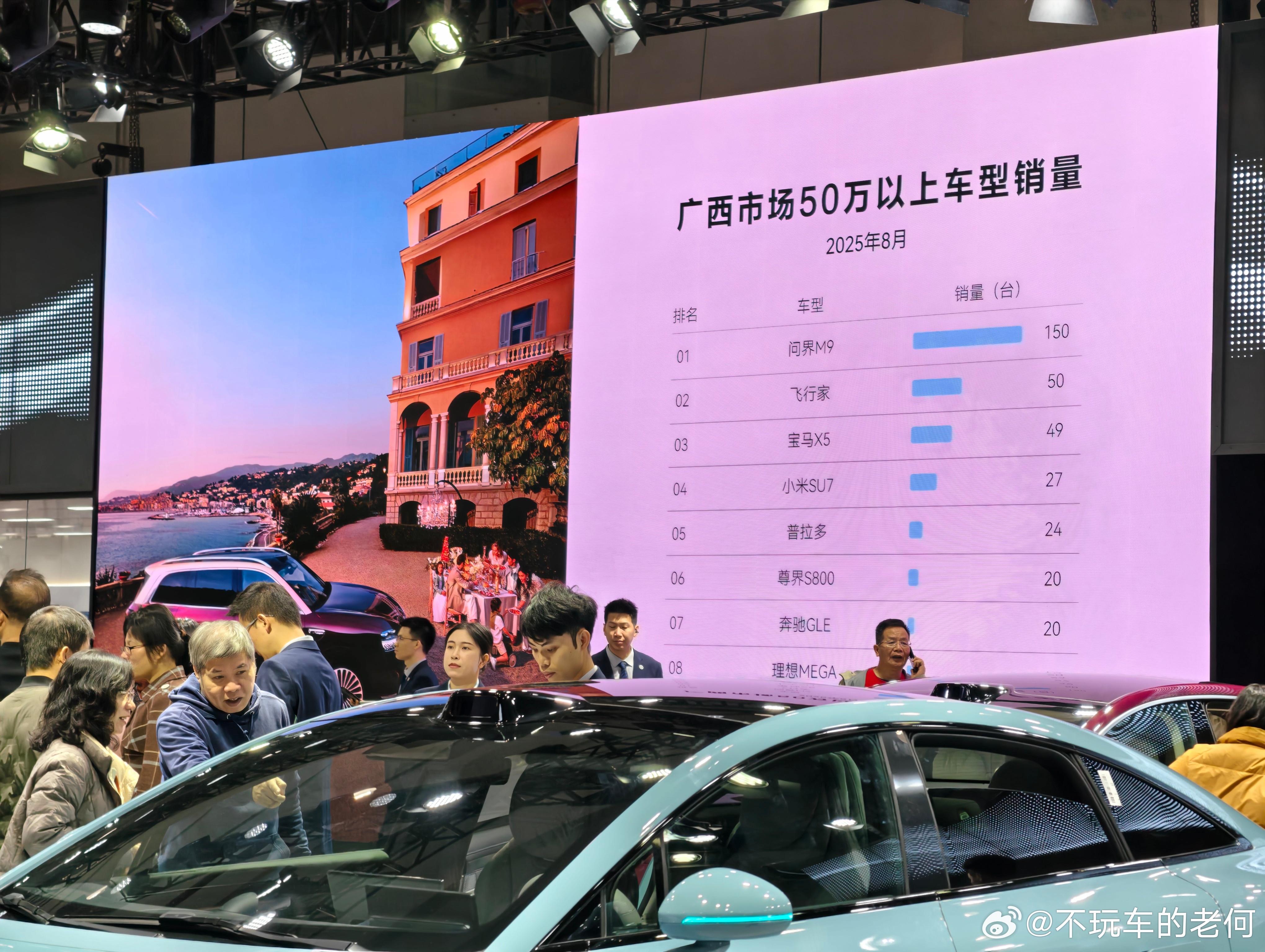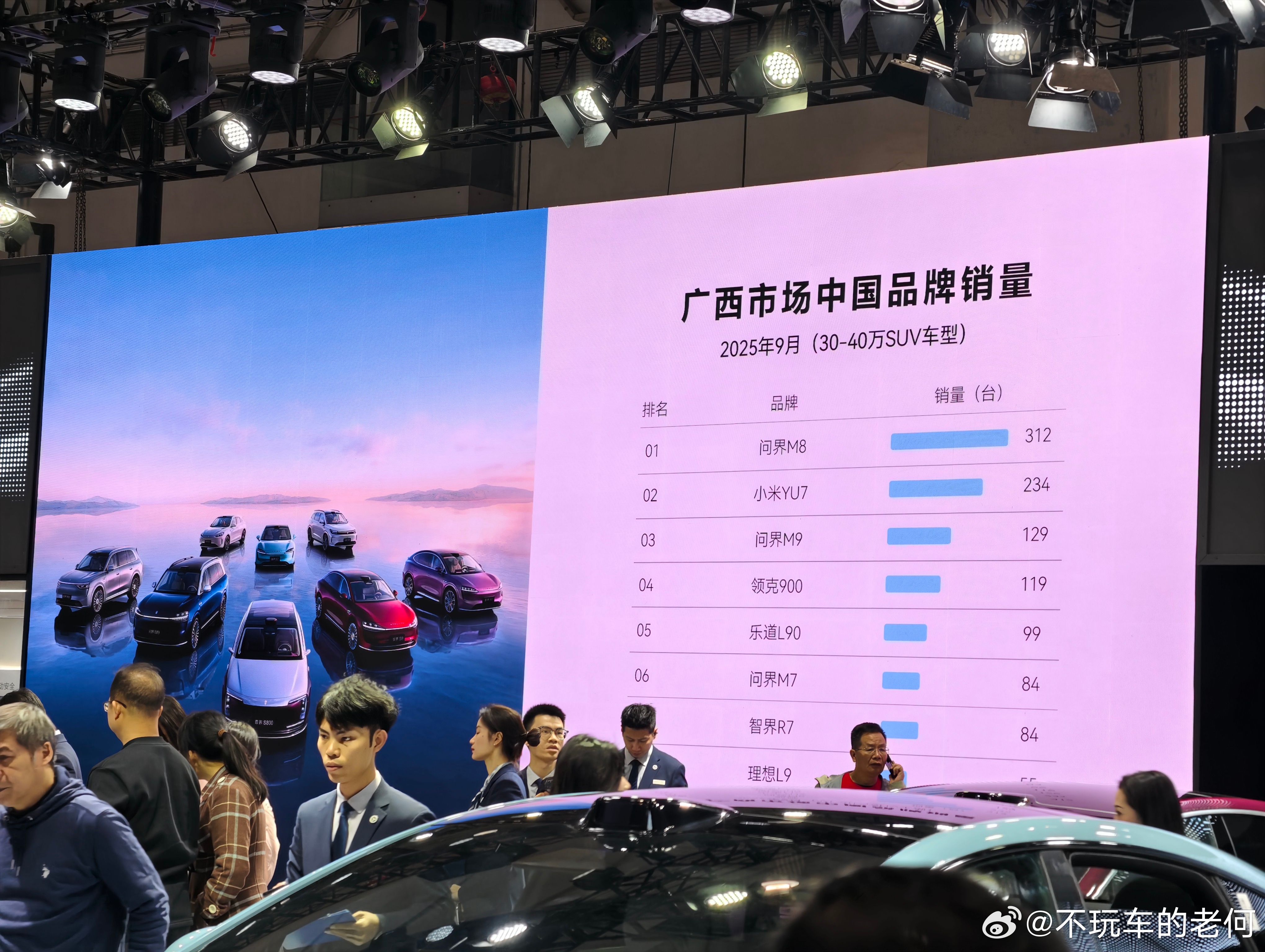 翻相册找到几张库存图,是车展的时候鸿蒙智行展台,直接拿销量榜单在大屏幕上循环播放