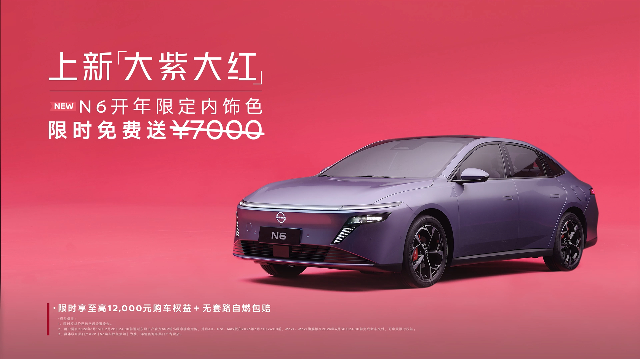 蓝盈莹开N6红运当头 看了蓝盈莹和日产N6的视频,这个紫色外观配上红色内饰,这不巧了嘛,大红大紫,好彩头。说到日产你脑中浮现的第一个标签是什么?我脑中想到的就是舒适的大沙发,日产大沙发的舒适很被认可,N6就是要把舒适做到极致。舒适分很多种,譬如视觉上舒适,气味闻的舒适,沙发坐的舒适。N6的360°环抱式座舱用了全新的红黑撞色,视觉上有冲击感,坐进去有那么点红图大展的意思。再配上母婴级的用料,新车不可以有不好闻的味道,必须闻着舒适,这也叫紫定健康。前后排零压云毯沙发坐上去直接被舒适围绕了,比家里的沙发还舒服,这叫紫定舒服。除了沙发坐的舒服外,再配上全域防晕车技术,打通底盘,动力,座舱,辅助驾驶,主被动协同防晕,这叫紫定不晕。大紫大红内饰的N6,寓意很好,紫定好运,紫定幸福新年开大紫大红大N6
