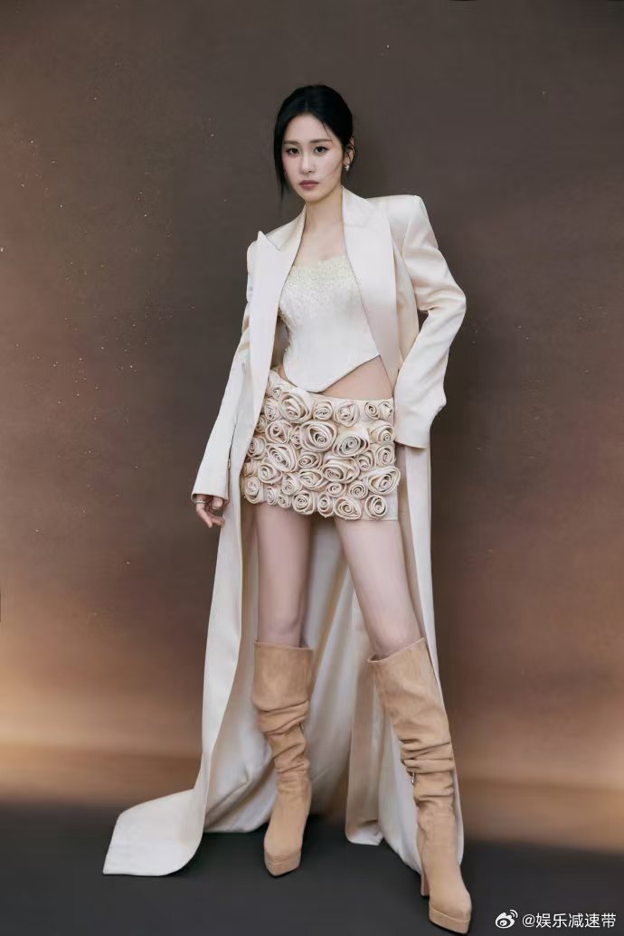 张碧晨裙子上有43朵玫瑰 张碧晨这身穿搭绝绝子!米色廓形礼服搭配43朵香槟玫瑰,低调高级范,舞台效果超棒!