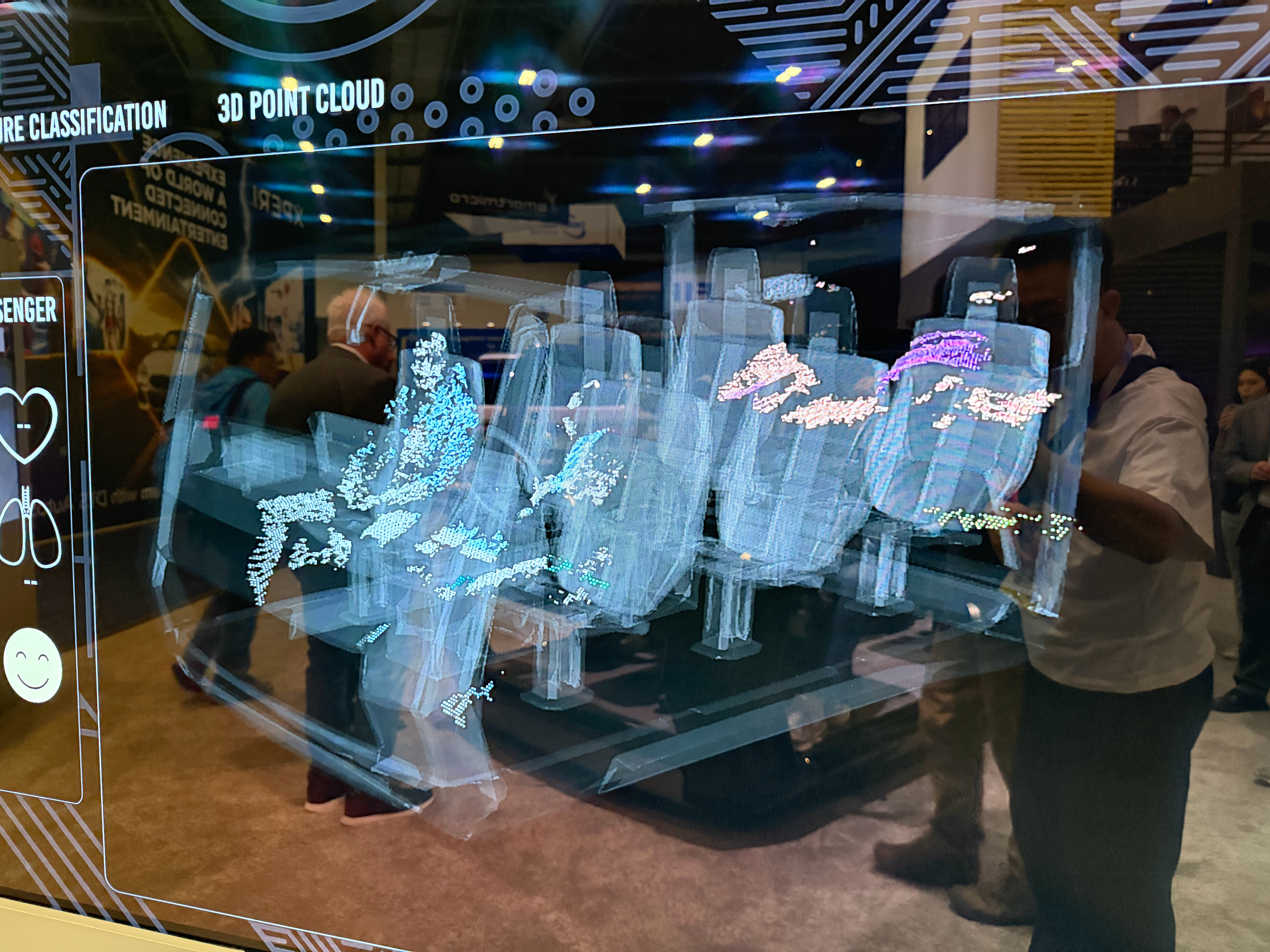 有技术的汽车供应商还是好看,26年CES上带我去参观了镜泰科技。简单介绍一下,波音787上那个超大舷窗上的电控调光玻璃就是他们家做的。 但他们家能做的东西远不止于此,比如这次他们带来了一个能够实现车内全感知的摄像头后视镜组件(9图)。它是通过在中央后视镜和最后一排的两个摄像头来同时检测车内活体生命监测,温度,表情分析,心率,呼吸频率,动作识别,甚至呼吸产生的震动识别。比如通过多维度分析驾驶员状态,通过呼吸产生的震动识别婴儿座椅内的婴儿。高度集成化带来了超小体积超大作用的巨大反差。看似是一个2D摄像头,但实际上还包括了基于结构光的3D感知模块。大家平时多关注一些这样的技术供应商,无论是了解汽车,还是投资都能找到核心出处。 他们还带来了一个重要的装备,多功能流媒体后视镜。相比于传统单一的媒体后视镜,它可以通过调动车周围摄像头,来动态显示后视镜自己周围东西,例如图9的后视镜中出现了超车以后盲区画面补强,甚至可以联动办公软件,在车内实现不影响驾驶的视频会议。 未来像镜泰科技这样的技术型供应商,逐步的都在从单一技术节点,逐步走向宽泛的可持续演进的系统化平台。说人话就是慢慢从幕后开始走向台前了,慢慢从一个技术点开始全面平台化了。所以我觉得CES看什么?这些技术供应商才是重点!它们往往都在引领着下一个新的时代的重要标签。所以下次如果你去看CES,记得多留意留意这些看似不起眼,但大有乾坤的展台。 美国