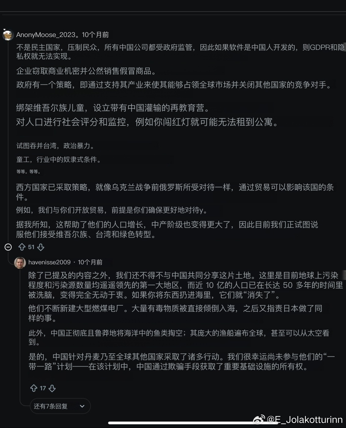 不支持美国对格陵兰的觊觎,不代表对丹麦有所同情。北欧一直都是反华急先锋地区,且反的毫无道理,你看下图普通丹麦人的言论就可见一斑。西方阵营自己的内斗,他们自己解决去吧。