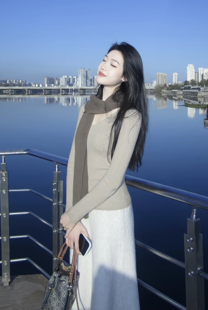 粉色半身裙配白色高领衫这搭配,简直是优雅气质氛围感拉满!想象一下,在春日街头,