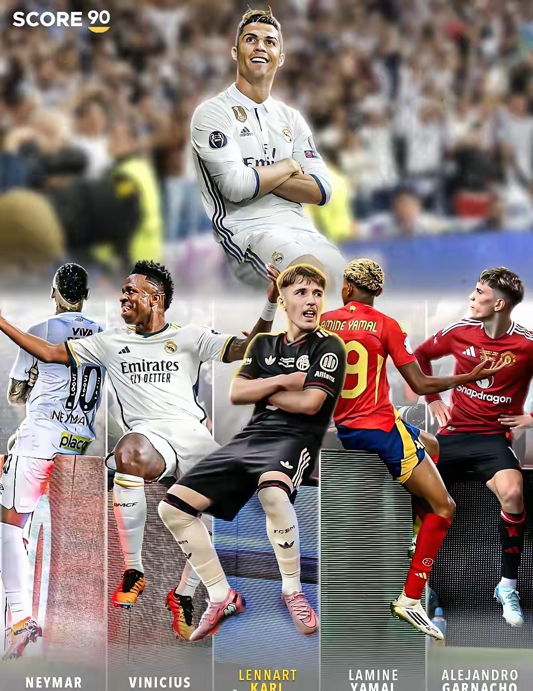 欧冠25周年宣传图,作为欧冠之王,C罗竟然不在列,原来是这个原因。欧冠邀请了7