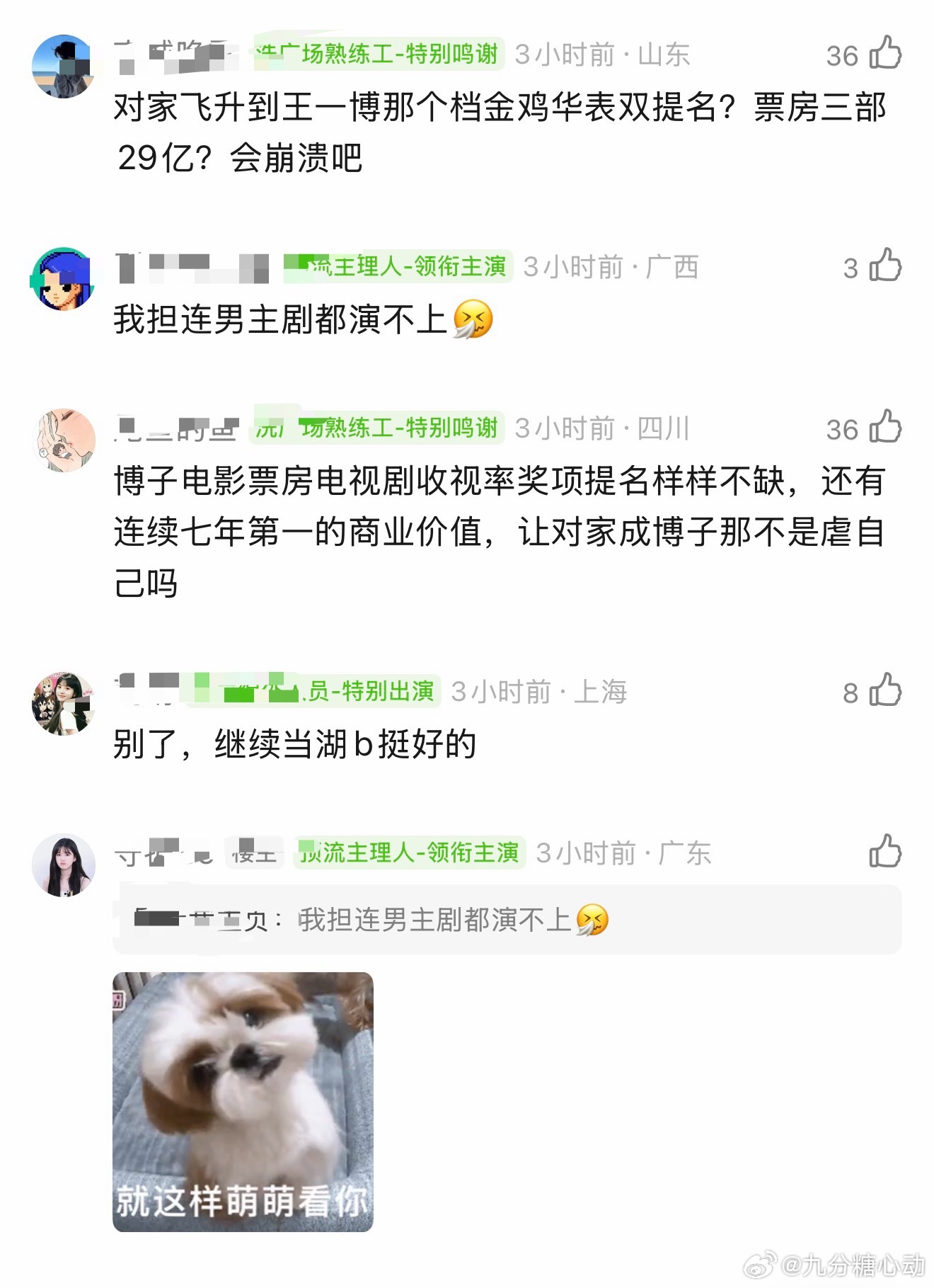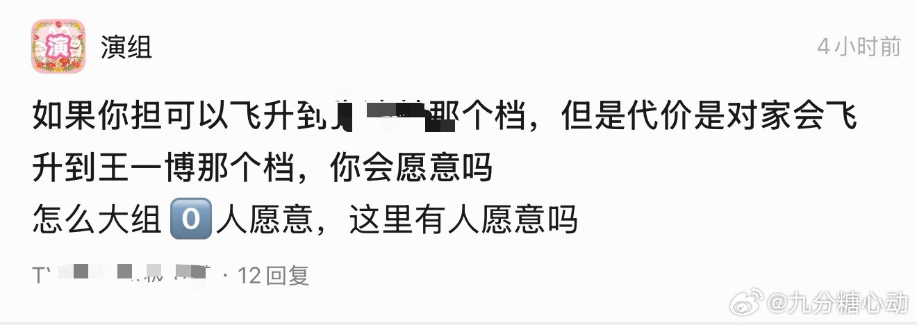 如果你家飞升成__(是谁不重要)但代价是对家也飞升成王一博那个档你愿意吗?看来瓣女平常在那问拍不拍戏,到这种问题还是很诚实。
