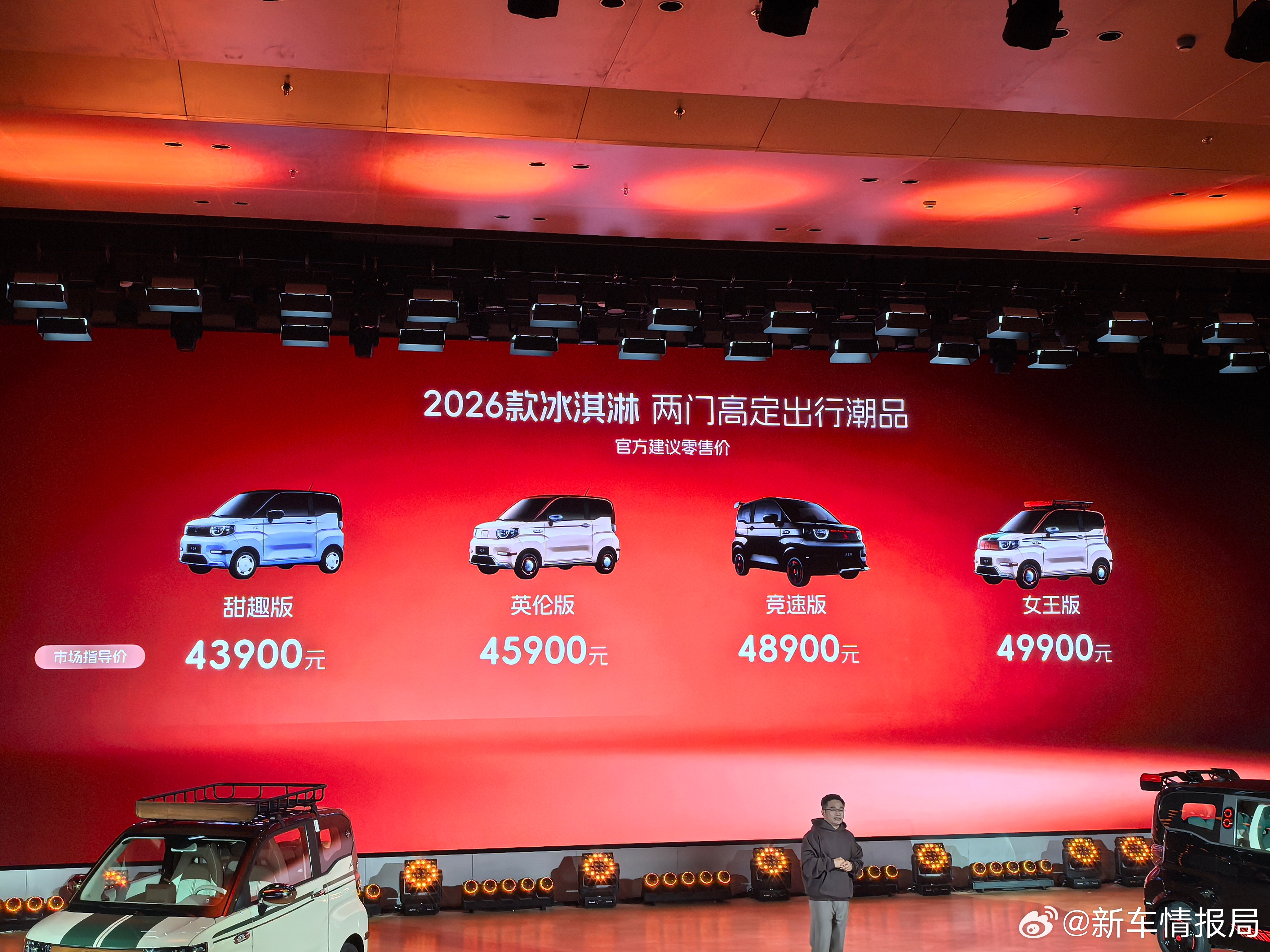 新车划重点 1月10日,26款奇瑞冰淇淋和小蚂蚁车型正式上市,冰淇淋车型售价区间为4.39-4.99万元;小蚂蚁车型售价区间为5.49-6.09万元。这次上市最亮眼的就是冰淇淋车型了,因为它将带来全新两个版本,分别为竞速版和女王版,接下来咱们就来简单聊一下这两款车。新车情报局 【复古风格选女王版】这次上市的车型还是延续了现有车型的设计风格,只不过女王版的设计会更加复古,新车使用了暖色调进行装饰,还加入了棕色和绿色的点缀。【女王版实用性更高】女王版车型将会使用更多的镀铬装饰,包括后视镜、轮毂罩、门把手等,并且还配备了车顶行李架、小书包、车身拉花等,对于喜欢郊游的朋友来说还是很有吸引力的。【运动属性选竞速版】竞速版车型的外观会更加激进和运动,黑色的涂装加上红色的点缀,让其看起来更像是一台黑夜的精灵,低趴的前铲、竞技级悬浮尾翼、红黑轮毂等都是出现在了该车型上。【内饰用料再升级】两款车内饰的布局是一样的,只是配色有所差异,但都使用了复古的皮质包覆,软包面积也是进一步加大,还提供了多达20处的储物空间。【麻雀虽小五脏俱全】新车将会配备9英寸的悬浮式中控屏幕,并且支持APP远程控车,比如开关车门、启动车辆、远程控制空调等,同时车内还配备了3个1/4螺纹接口,可以拓展更多的用车方式。【长续航更有优势】两款车都将支持22kW快充,最大续航可达220km,还提供了2种驾驶模式,坡道辅助、蠕行模式、EPS等也是一应俱全。
