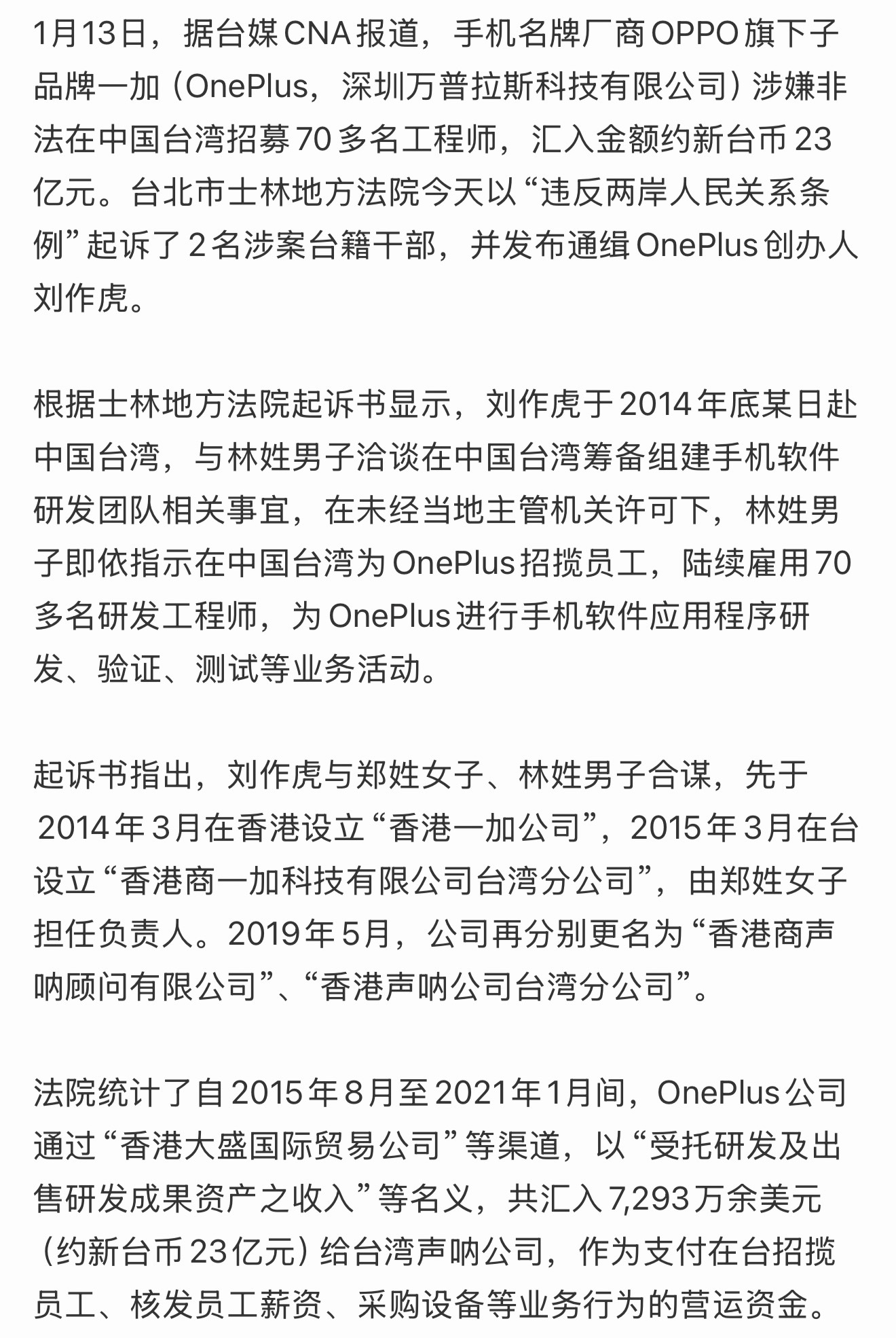 蛤?一加因涉嫌违法在台招募超过70名工程师,刘作虎被地方检方通缉了?