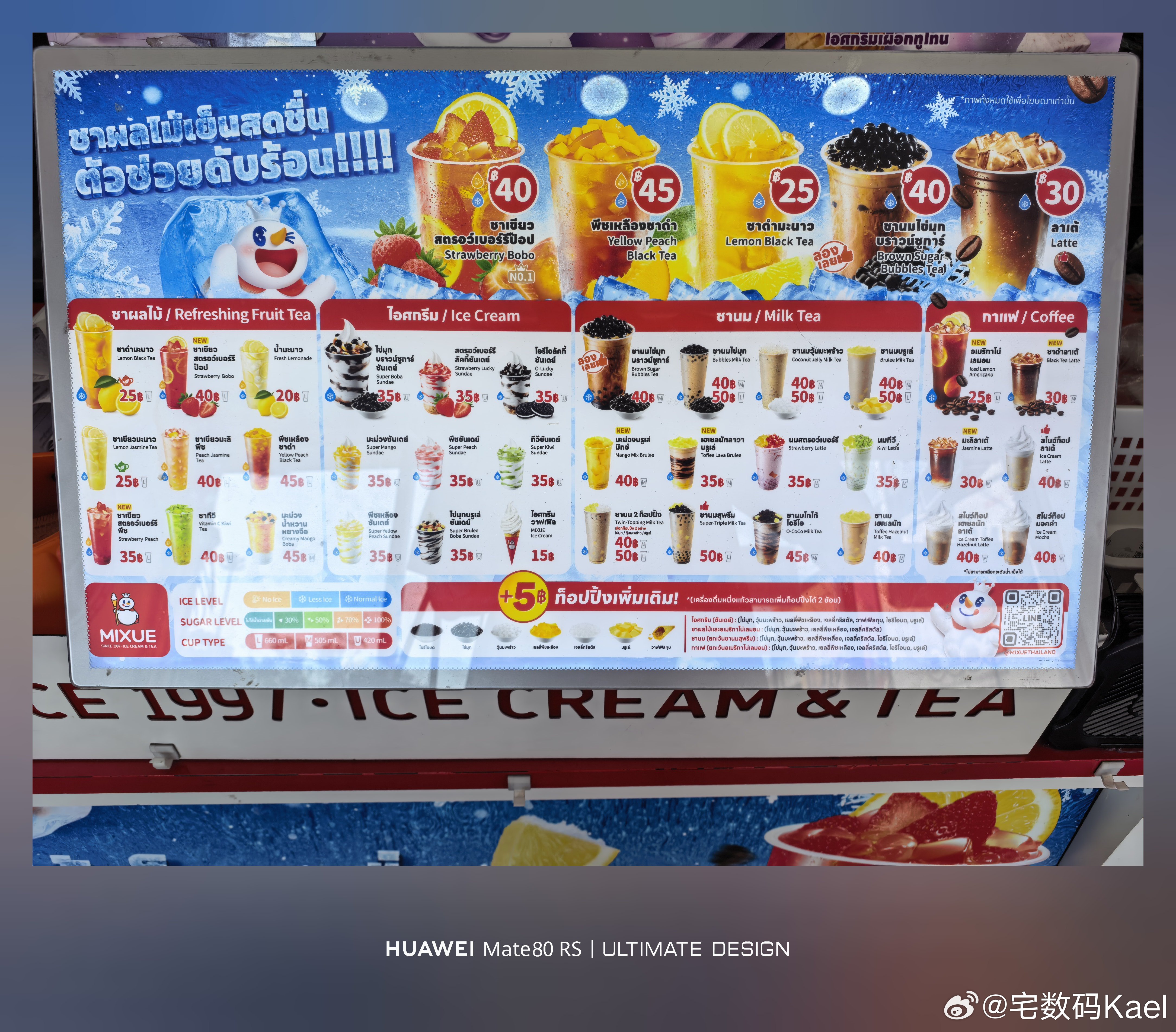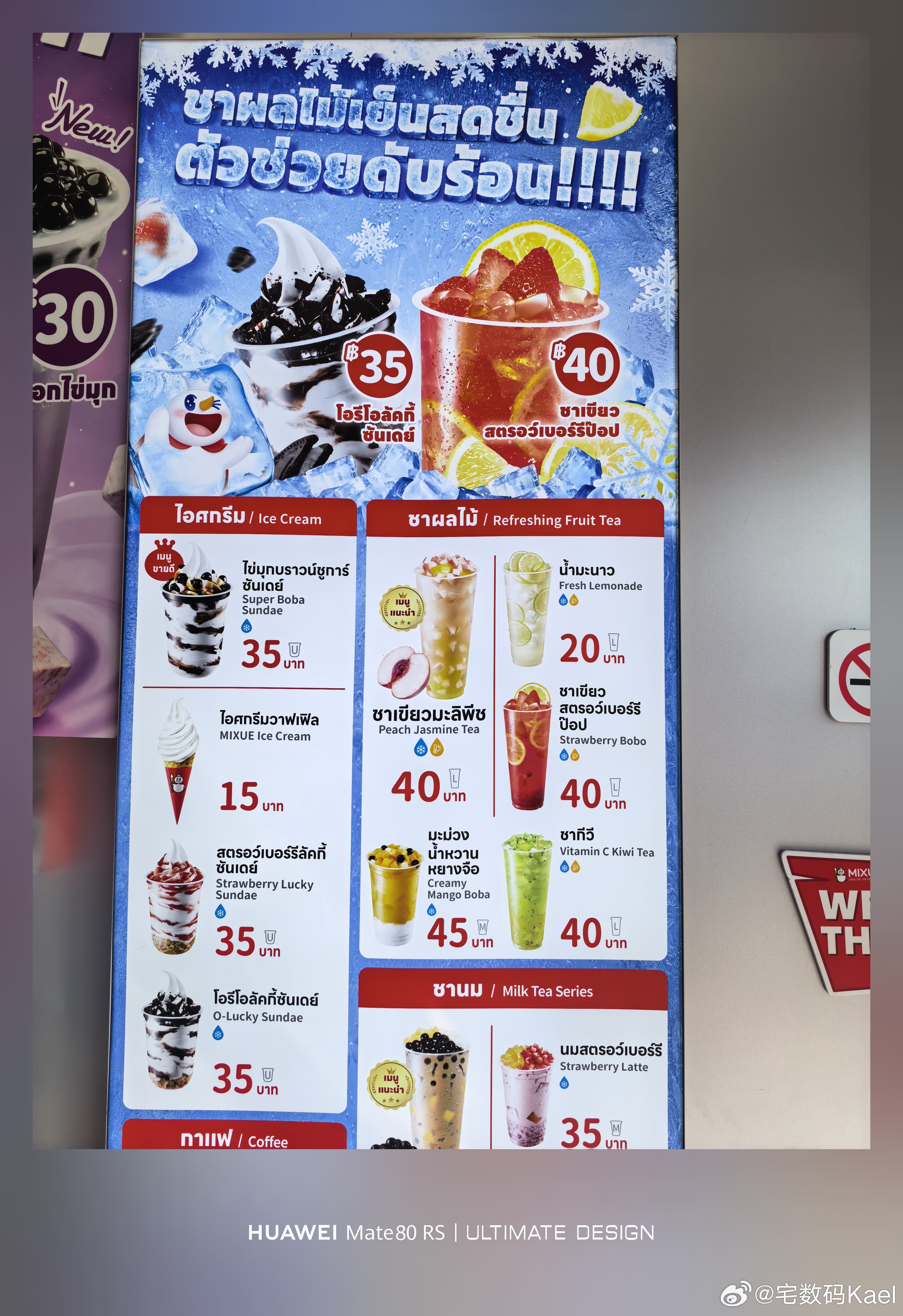 清迈塔佩门,看到一家蜜雪冰城,和星巴克开在一块,有不少歪果仁在买。天太热了,进去瞅了一圈。点了杯草莓啵啵,40泰铢。折合8.83元人民币,我感觉,好像比国内外卖还贵点?