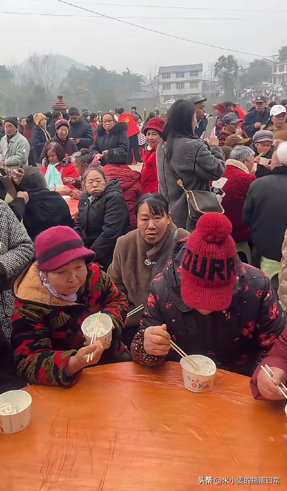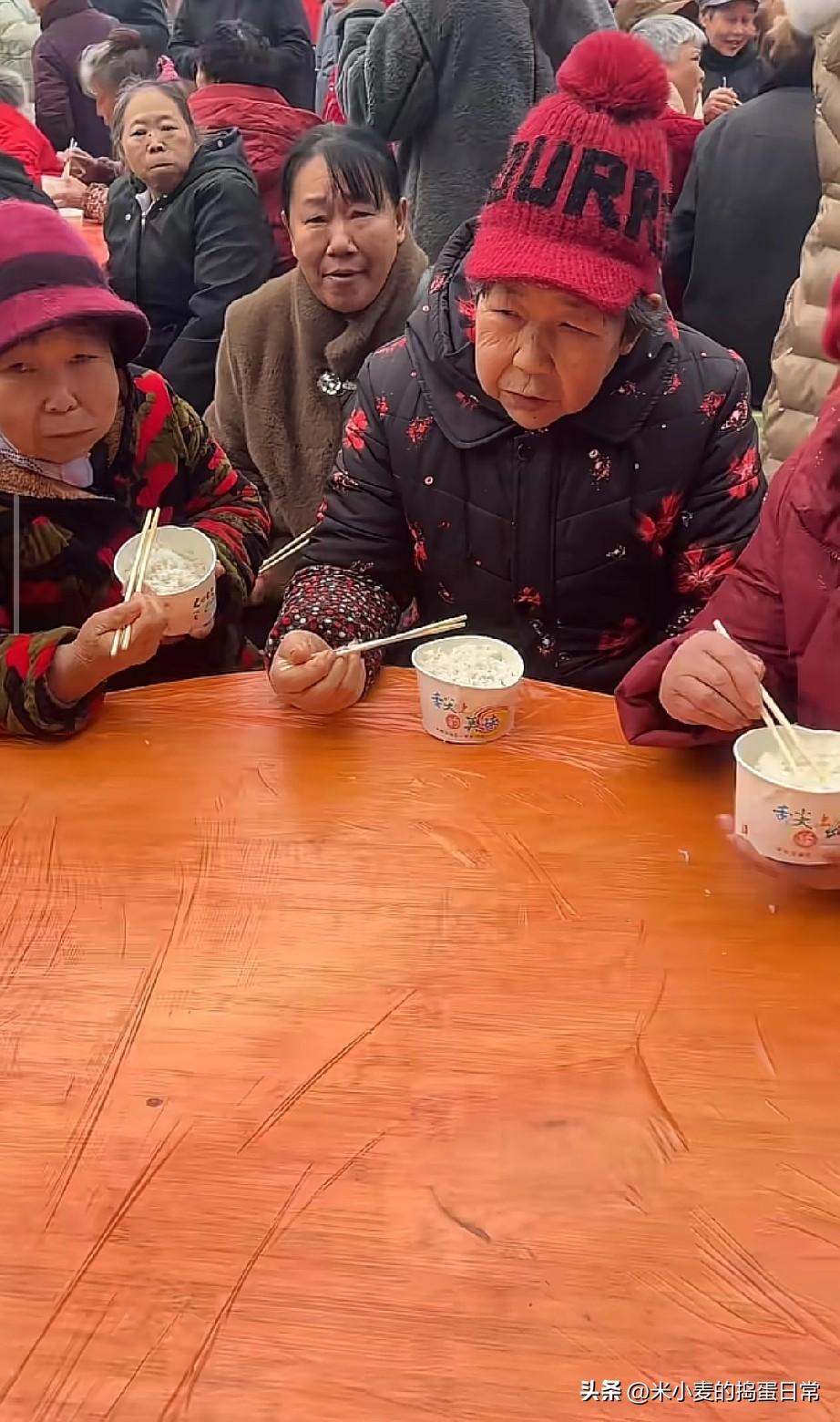 刨猪汤变“白米饭大会”,满场老人干等菜,这年味咋就变味了? 四川农村的刨猪汤,本来是杀年猪、聚乡亲的热闹事,结果现场直接看傻了!满场都是大爷大妈占着位置,乌泱泱的人挤得水泄不通,桌子上只摆着白米饭,连个菜叶子都见不着,老人们饿了只能先扒拉白米饭垫肚子,那场面又心酸又滑稽。 记得以前的刨猪汤,刚宰的猪肉炖得喷香,血旺、炒猪肝摆满桌,邻里围坐边吃边唠,年味浓得化不开。现在倒好,成了“抢位置大赛”,菜没上桌先抢座,好好的民俗宴变成了白米饭局,刨猪汤的烟火气全没了。 有人说不如直接改成重阳节敬老宴,可刨猪汤的年味特色又该往哪搁? 难道传统民俗的热闹,终究抵不过人多抢座的乱象?还是说如今的刨猪汤,早就丢了原本的心意,只剩形式了?