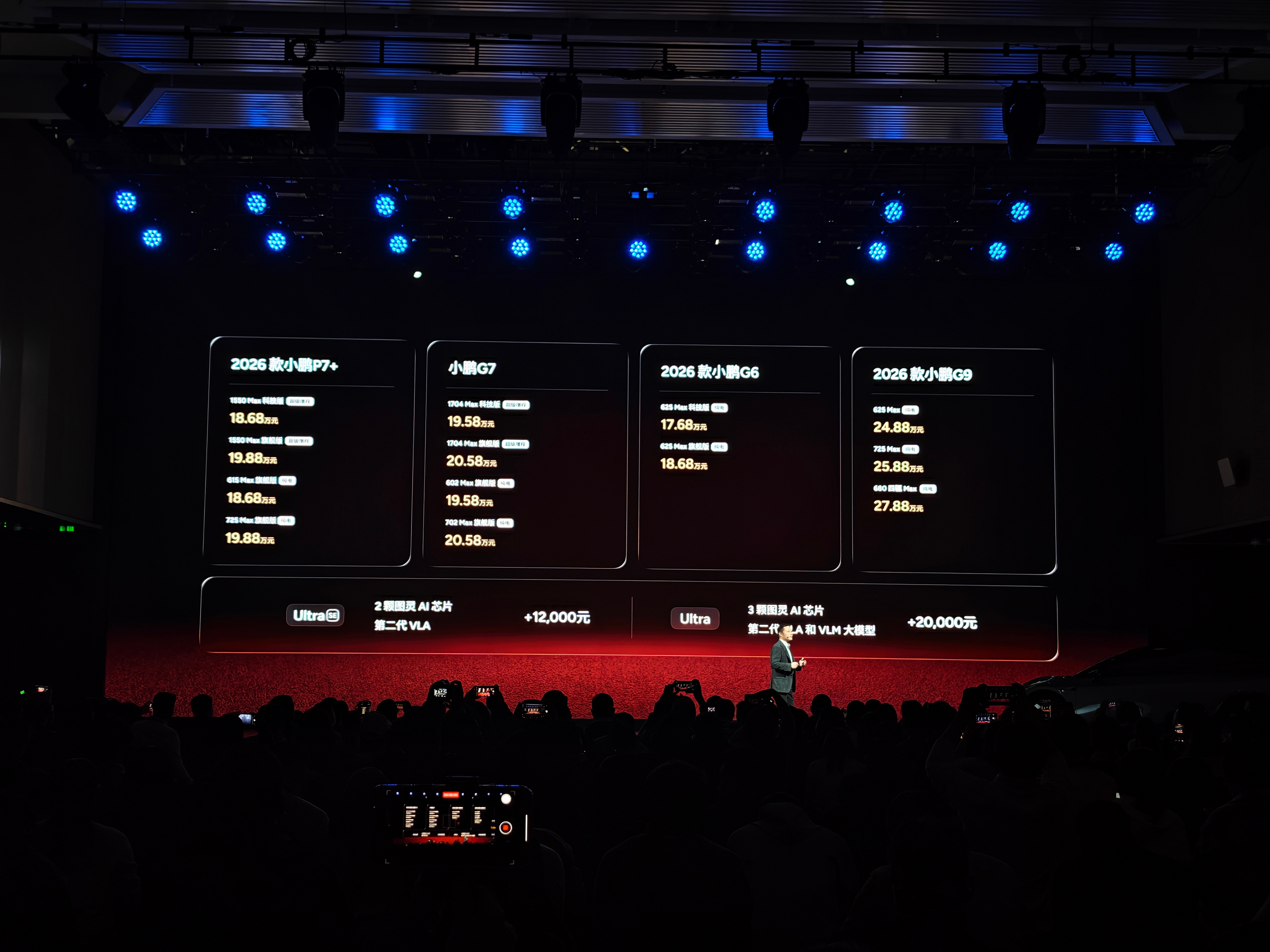 小鹏新年四车齐发小鹏重磅发布 VLM 视觉语言大模型,这颗车辆理解世界的 AI 大脑,成为人与汽车对话操控的新一代 OS 入口,以感知、记忆、思考、执行与沟通五大核心能力,引领座舱迈入「主动服务」时代。VLM 带来三大交互革新:化身察言观色的贴心管家,实现手机车机跨智能体高效联动,语音助手升级为千人千面的情感伙伴与多语言专家,搭配行业最严苛隐私标准的个性化记忆库,让智能更有温度。其与第二代 VLA 智驾系统超低时延协同,叠加 Max/Ultra SE/Ultra 三级配置梯度(搭载 1-3 颗图灵 AI 芯片,算力最高达 2250TOPS),满配版本可享满血智能体验,第二代 VLA 将于今年一季度开启首批推送。动力层面,鲲鹏超级增程技术凭大电池 + 大油箱组合,实现长续航、超快充等五大优势,获车主 “静得像电车”“北方也好开” 的一致好评,小鹏 X9 超级增程 12 月交付 5424 台创纪录。2026款小鹏G6和G9焕芯上市