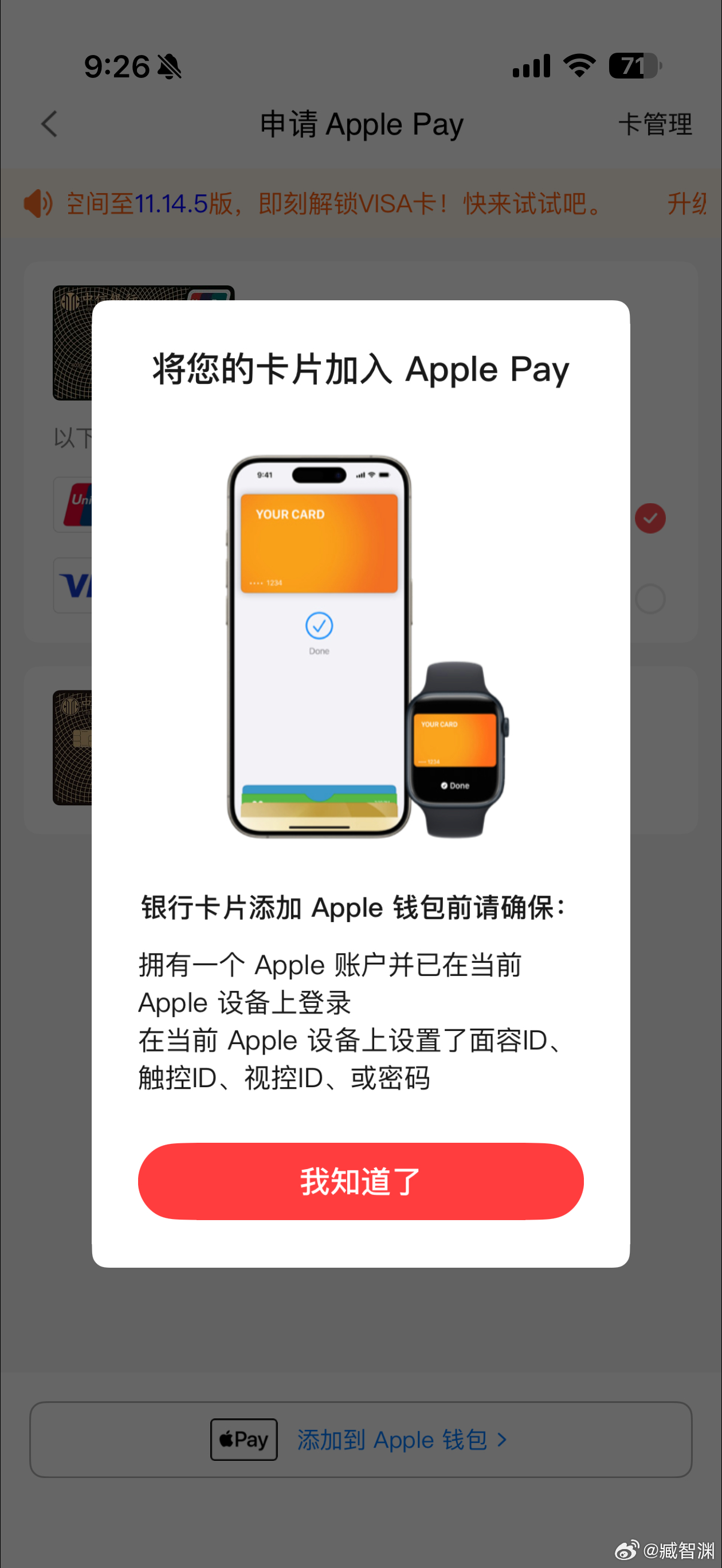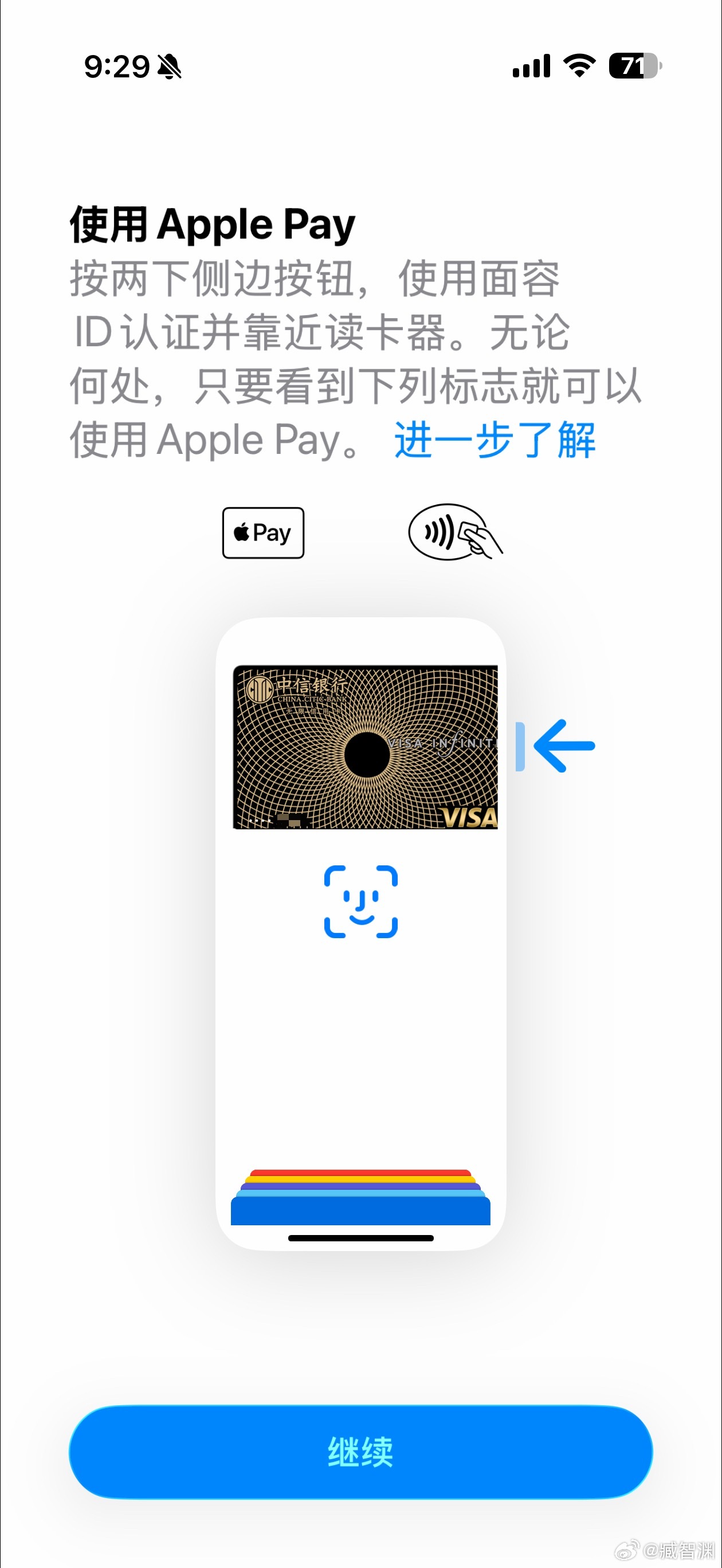 绑定银联十年后,境内Apple Pay终于支持绑定单标VISA卡了,可以少带一张卡,作为出国只背一个包的轻量级驴友表示开森,主要也是在国内呆惯了真的老忘记带卡。以中信为例,是从信用卡App里发起绑定。 国内ApplePay支持Visa信用卡