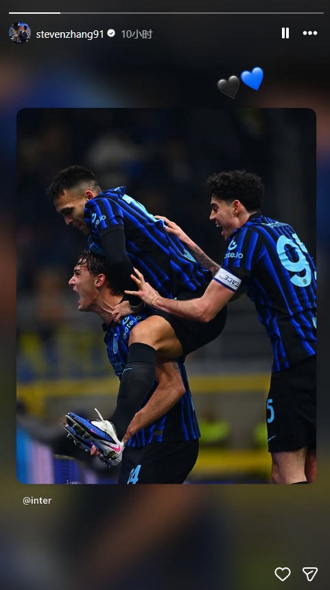 还在关注!张康阳发社媒,配图劳塔罗骑在埃斯波西托庆祝照片