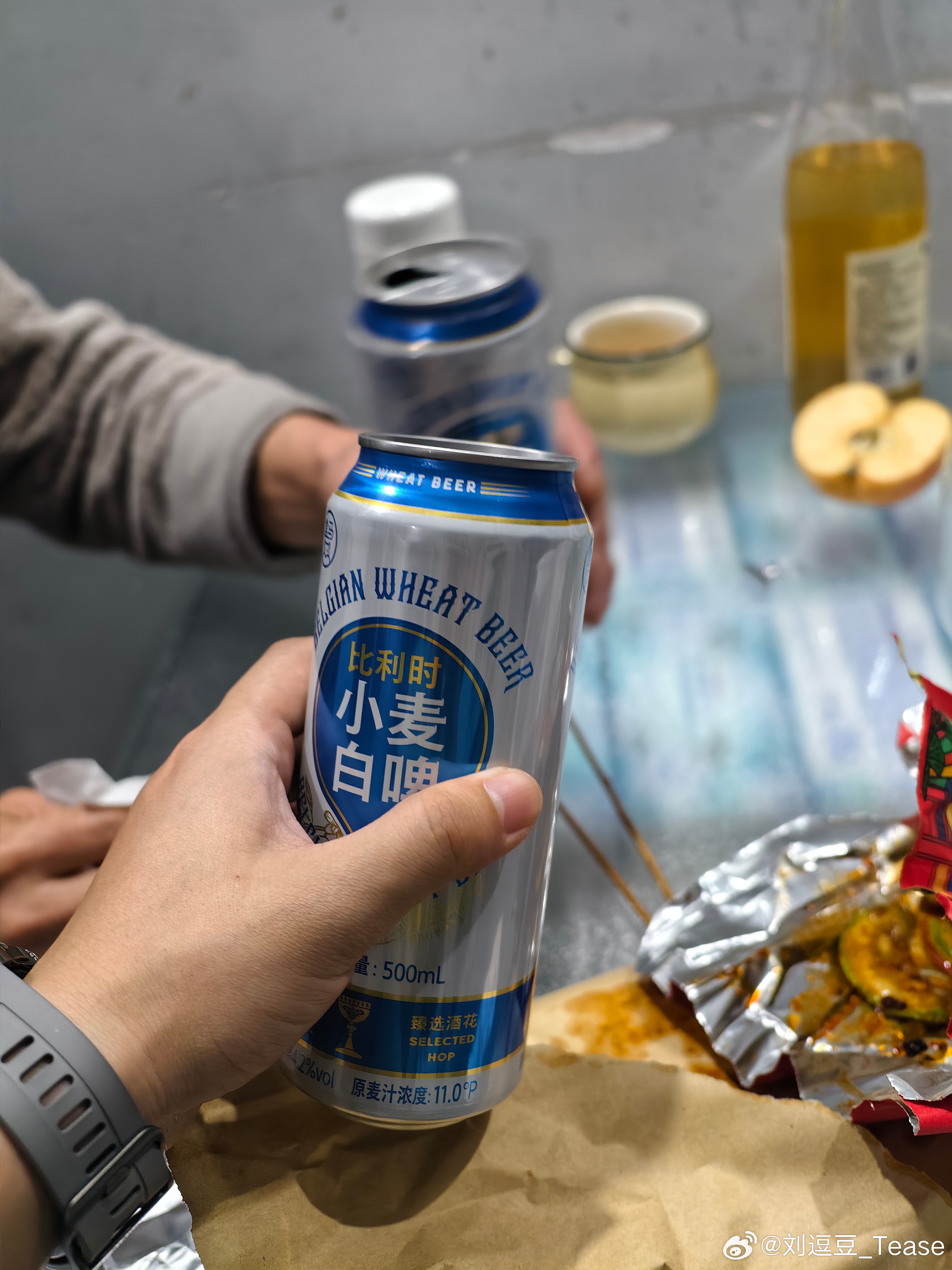 他们吃烧烤我看着肯定不行叫上老丈人一起来分享练后餐练后喝小麦果汁快乐加倍我的美食