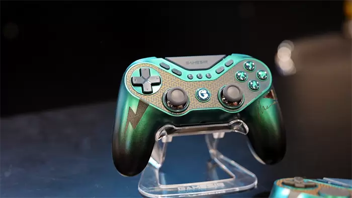 深度生态合作与游戏文化联动:作为微软全球合作伙伴,盖世小鸡全面展示了其丰富的微软Xbox授权手柄产品线。同时,与热门游戏《明末:渊虚之羽》、《绝区零》等推出的联名款产品,深度融合游戏文化元素,成为现场潮流热点。