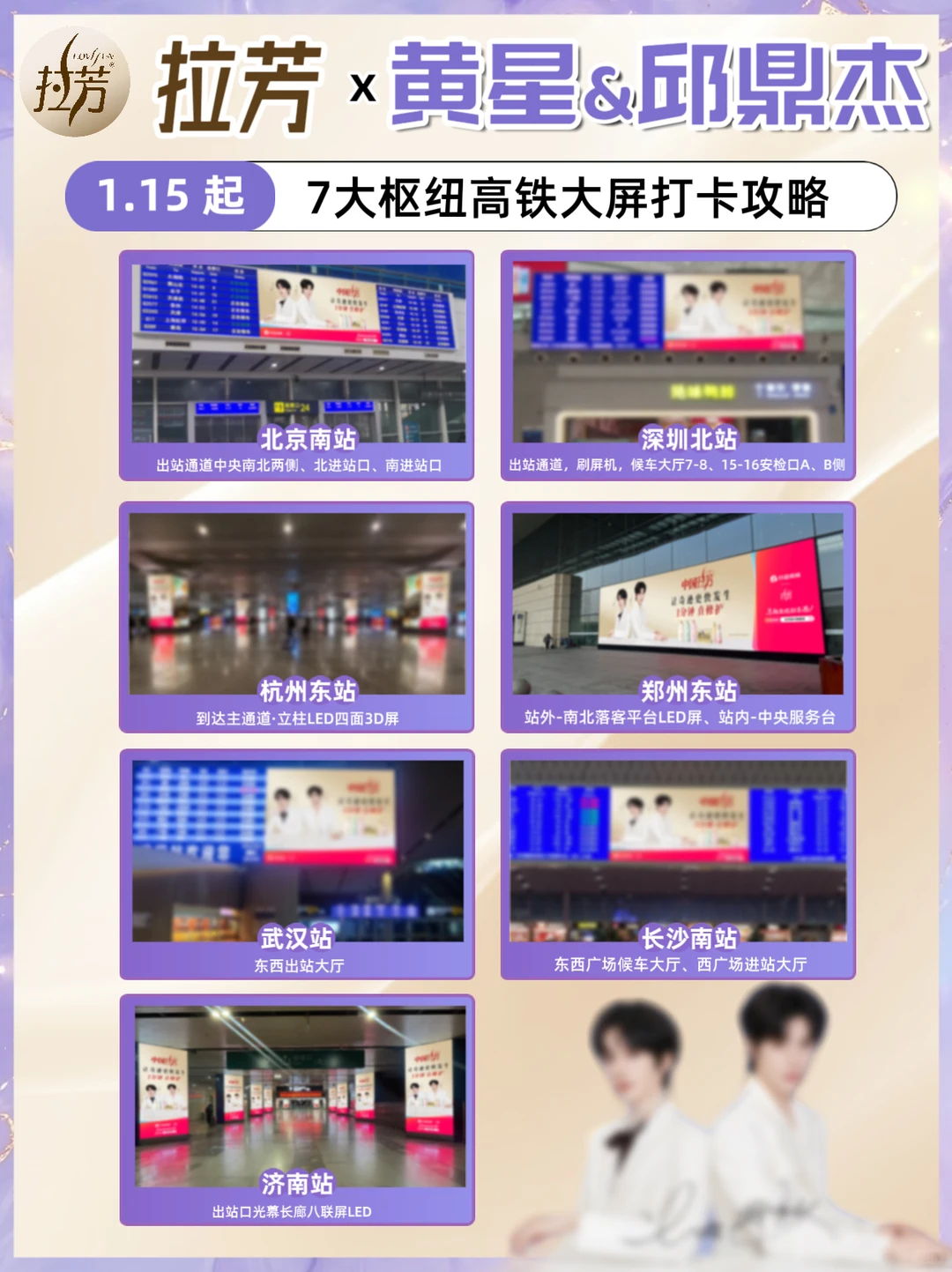 星邱一个洗头一个洗澡 2026开年的双人商务直接赢麻了!品牌真的太懂大家的喜好,线下应援铺满全城,高铁、黄浦江游艇、商场巨幕全是黄星和邱鼎杰的身影,连户外大屏地图连线都是他俩的名字首字母“XQ”!周边更是诚意满满,双人小卡和流麻颜值爆表,这波真的不冲不行!