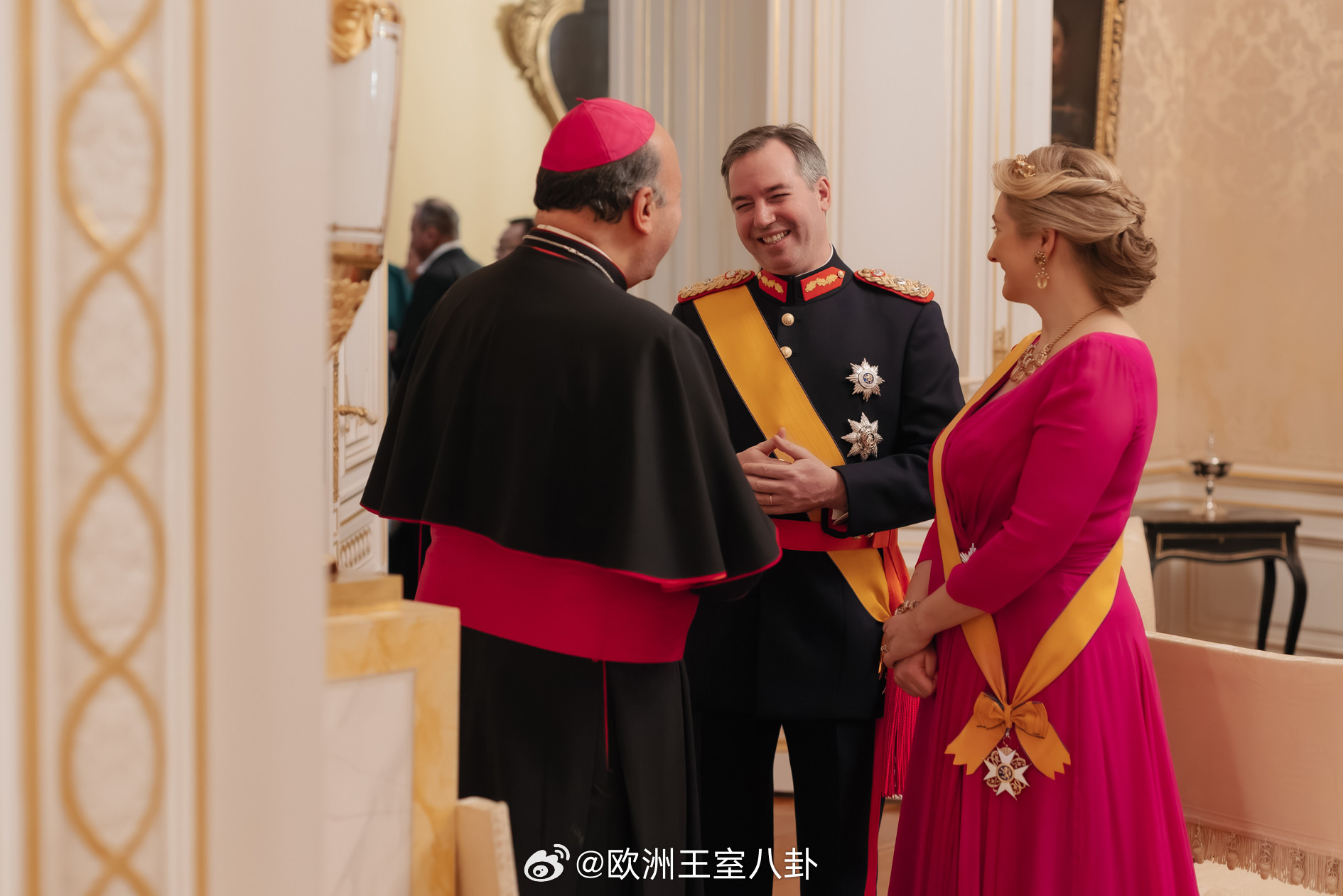 1.14 卢森堡大公纪尧姆五世和大公夫人斯蒂芬妮出席新年接待会,现在俩口子就一个