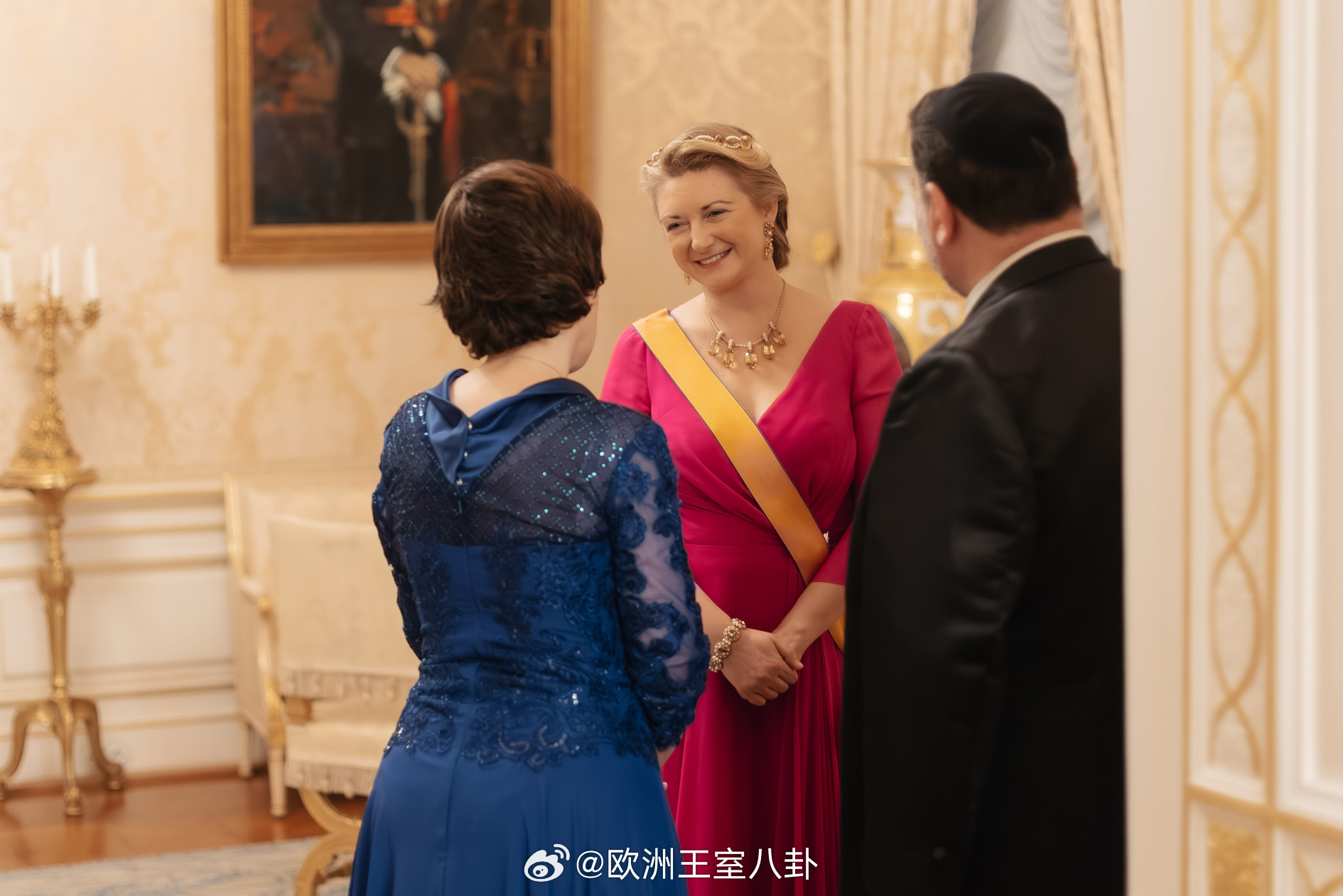 1.14 卢森堡大公纪尧姆五世和大公夫人斯蒂芬妮出席新年接待会,现在俩口子就一个词:喜庆