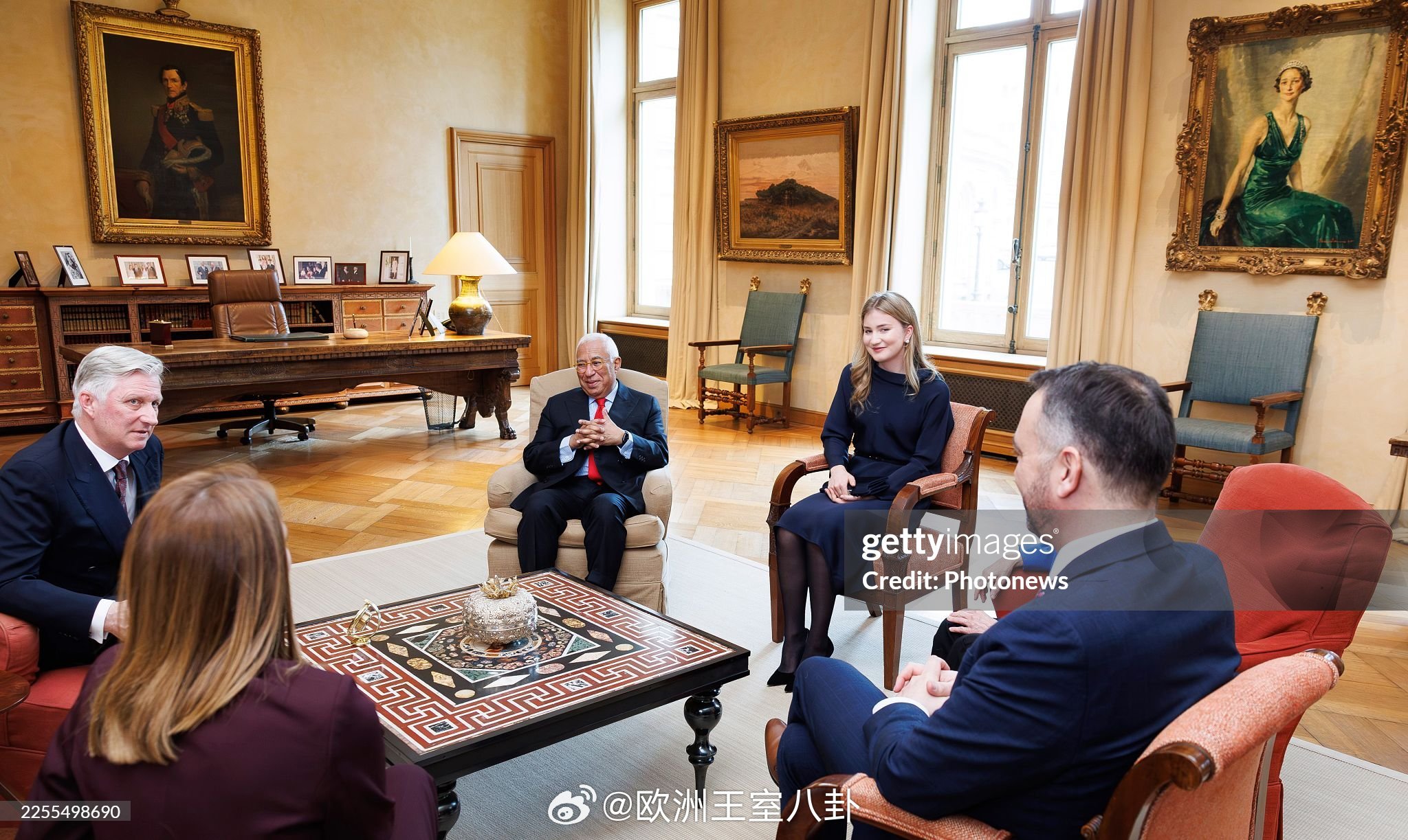 1.13 比利时国王菲利普和王后玛蒂尔德出席第二场新年接待会,欧洲各路驻比利时组织专场。继承人大闺女伊丽莎白闪现尬聊场子,母女俩都穿的阿玛尼