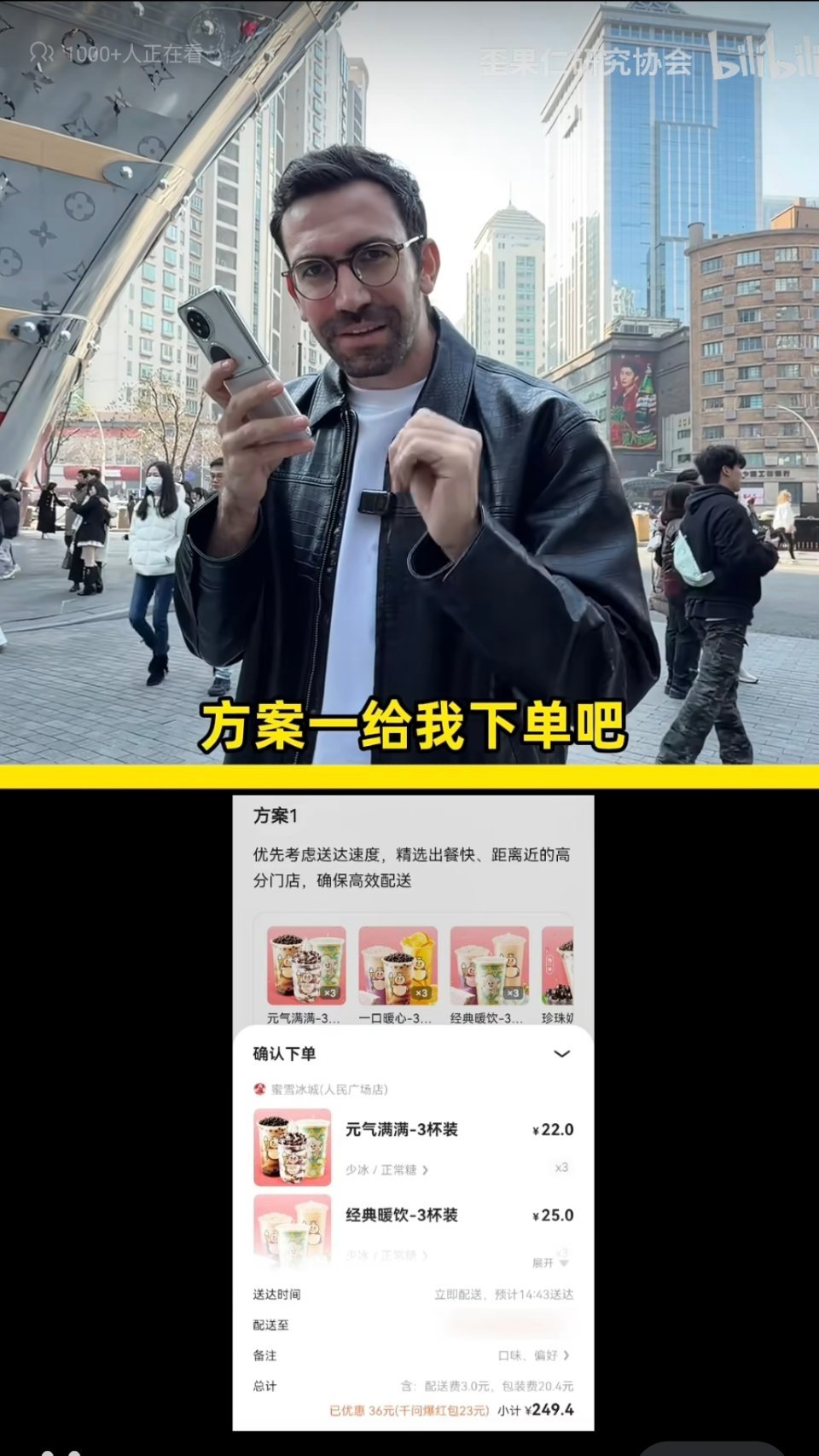 老外被AI点的奶茶拿捏 给老外亿点AI的震撼,点个奶茶算什么,亲测千问,不止是外