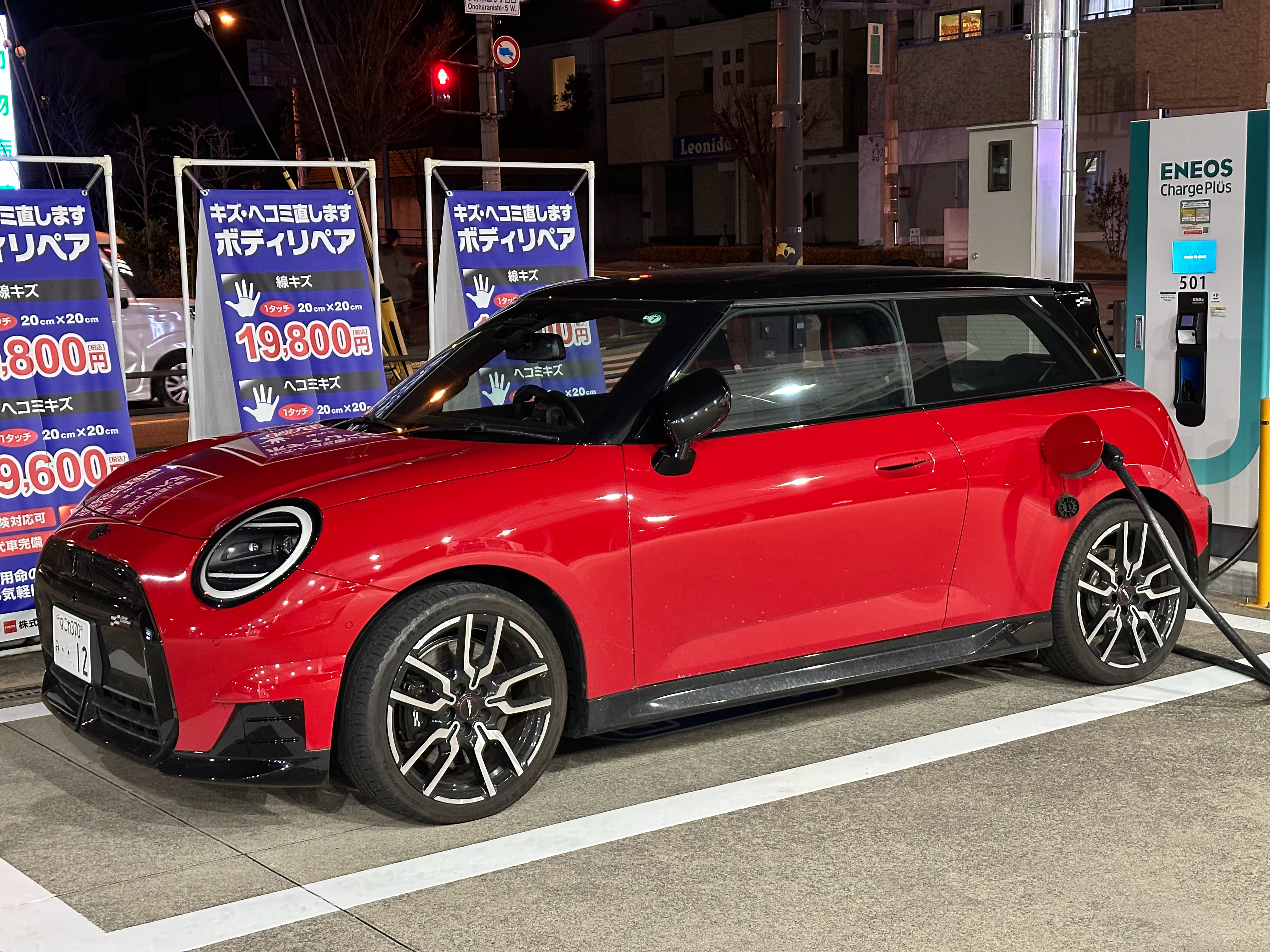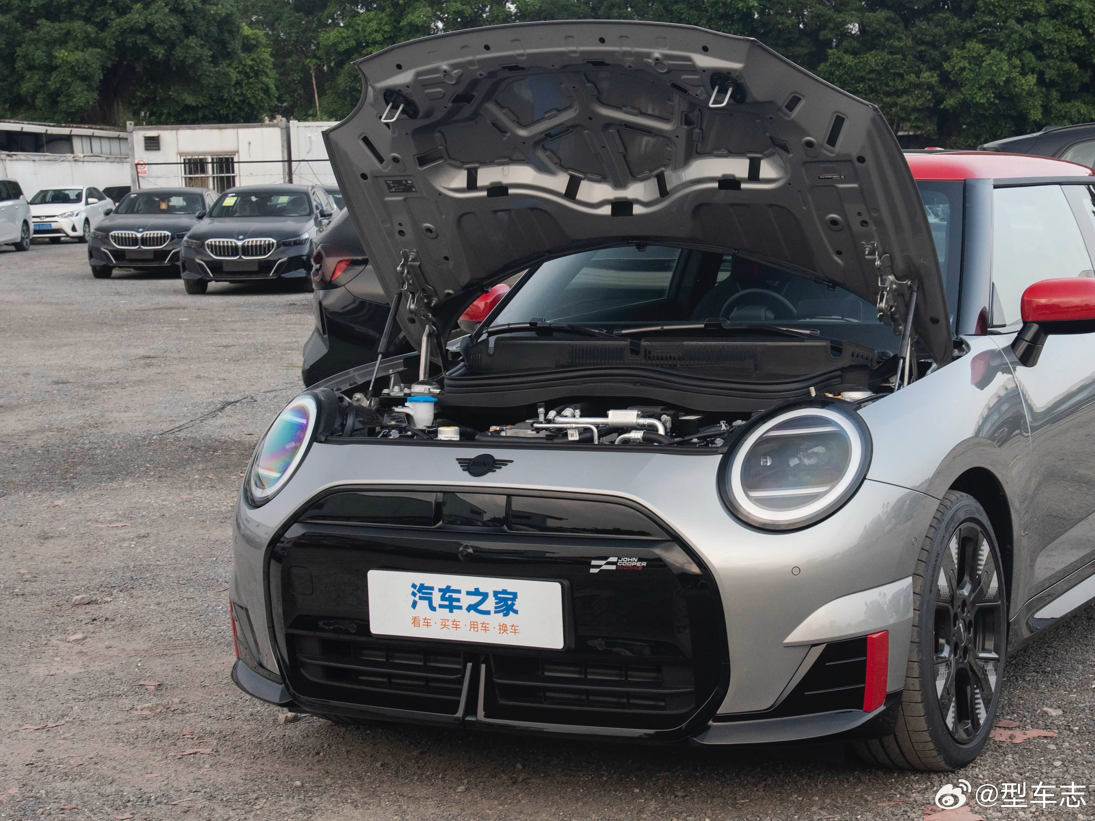 型车街拍 深夜偶遇一辆纯电 MINI JCW 在充电,太帅了。这代 JCW 有燃油也有纯电,远看基本长一样,很多人分不清。教大家一个快速分辨的方法:燃油 JCW 用的是经典蚌壳式机盖,大灯周围没有分线。纯电 JCW 取消了蚌壳结构,大灯周围会出现三条分线。所以只要看大灯边缘有没有缝,就能一秒辨别。