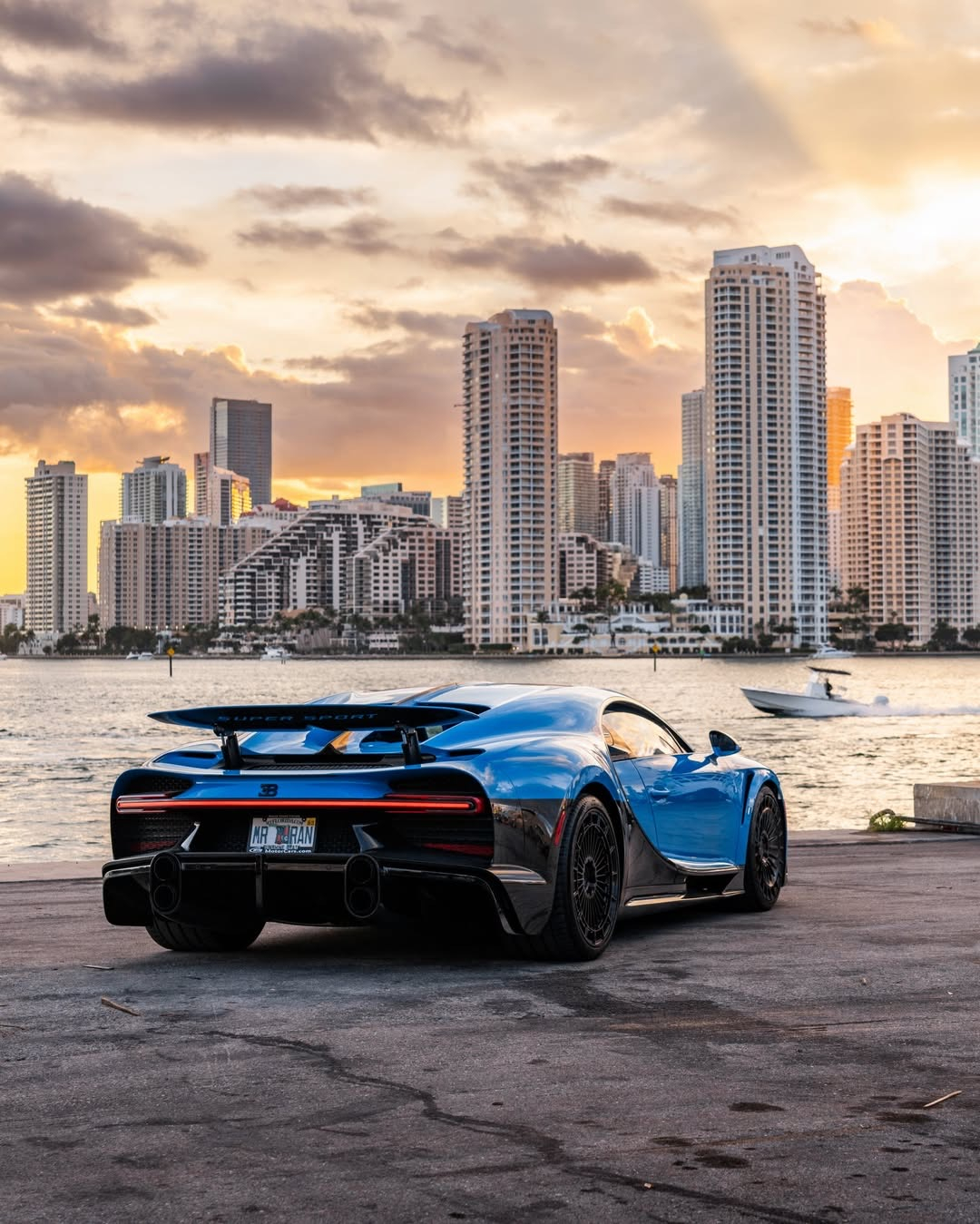 迈阿密街头这台Chiron SS换上Vossen轮毂直接帅到封神,与背后的风景尊嘟太搭啦