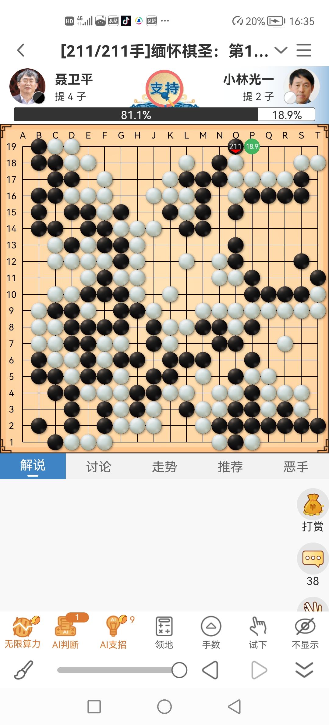 送别聂卫平棋圣!今天早上,中国职业围棋一代宗师、“棋圣”聂卫平因病逝世,结束了中国围棋界的一个时代。 在20世纪80年代的中日围棋擂台赛中,聂卫平作为主将力挽狂澜,11连胜日本超一流及顶尖棋手,创造了“擂台神话”,被当时的国家体委和中国围棋协会授予“棋圣”称号,掀起了全国的围棋热潮。我作为围棋业余爱好者 ,也是受中日围棋擂台赛影响喜欢围棋的,自己到新华书店、邮电局购买了大量围棋书籍、围棋天地、棋艺等自学围棋,然后到当地围棋俱乐部下棋,水平不怎么样,但是围棋理论知识还是可以的,大体上是“大湿”与“不大湿”的中间,现在到野狐围棋网站可以打到业余三段~业余四段,算是一辈子业余爱好之一。 送别聂卫平棋圣,愿在天堂里有围棋天地,可以继续纵横黑白围棋世界,快意江湖。