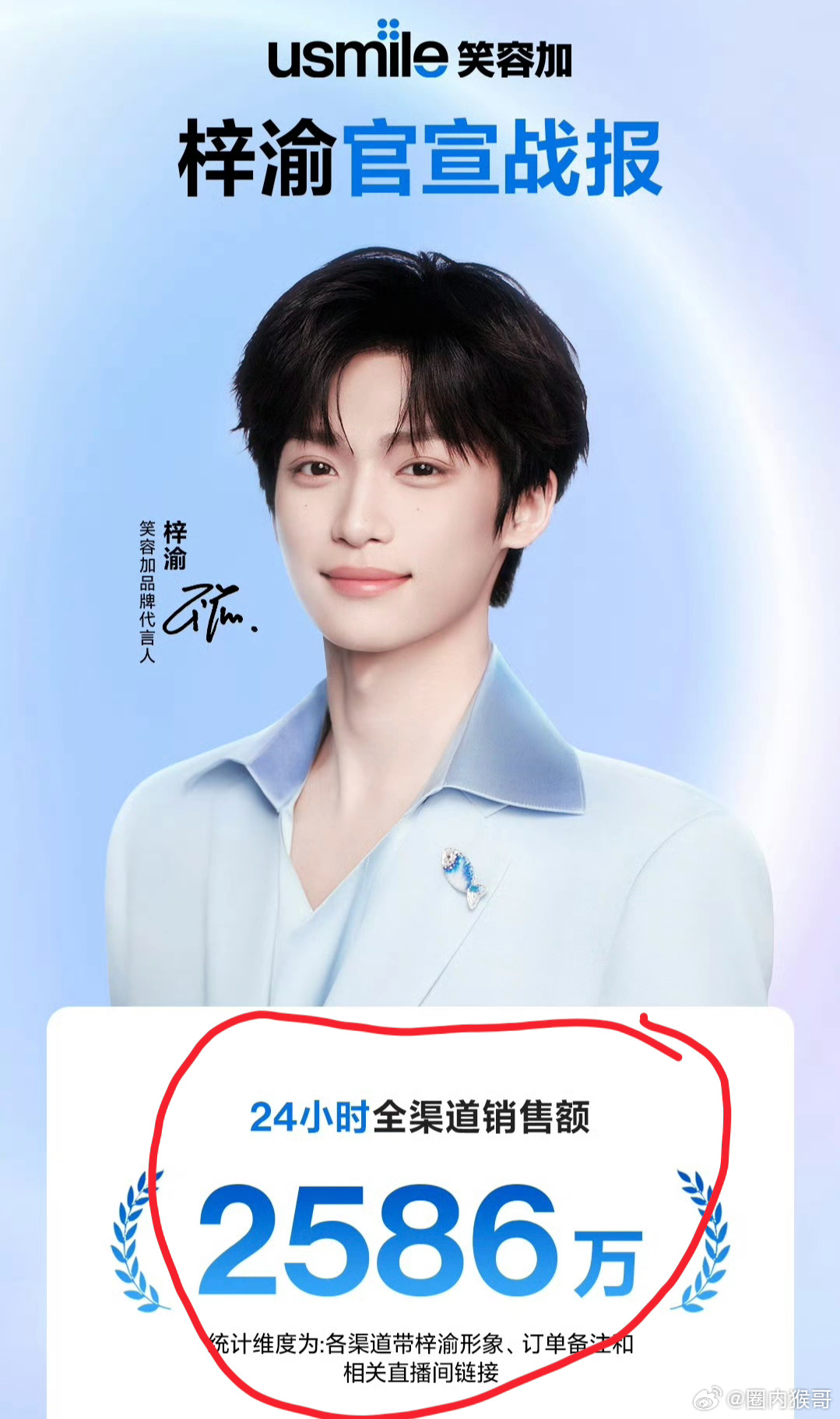 笑容加给他们的品牌代言人梓渝又出了周战报!全渠道增量销售额4556w,还有各种榜单第一,上次24小时周报是纯销售额是2586wyuni一般是冲24小时销量的,后续又增长了2000w证明很多散粉也在买买买才能有这么强劲的后续增长,只能说:梓渝号召力和yuni消费能力强到令人咋舌,活粉多到离谱!