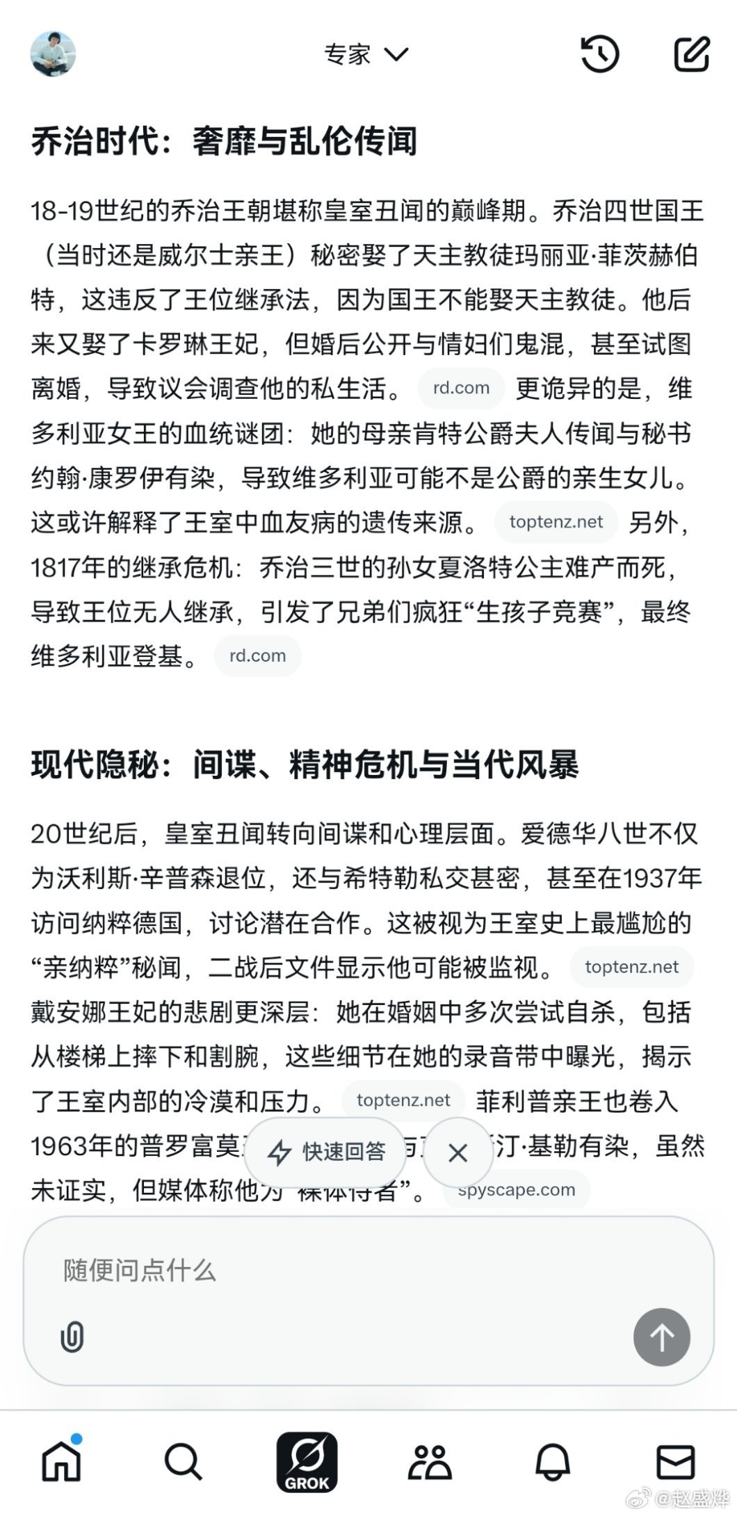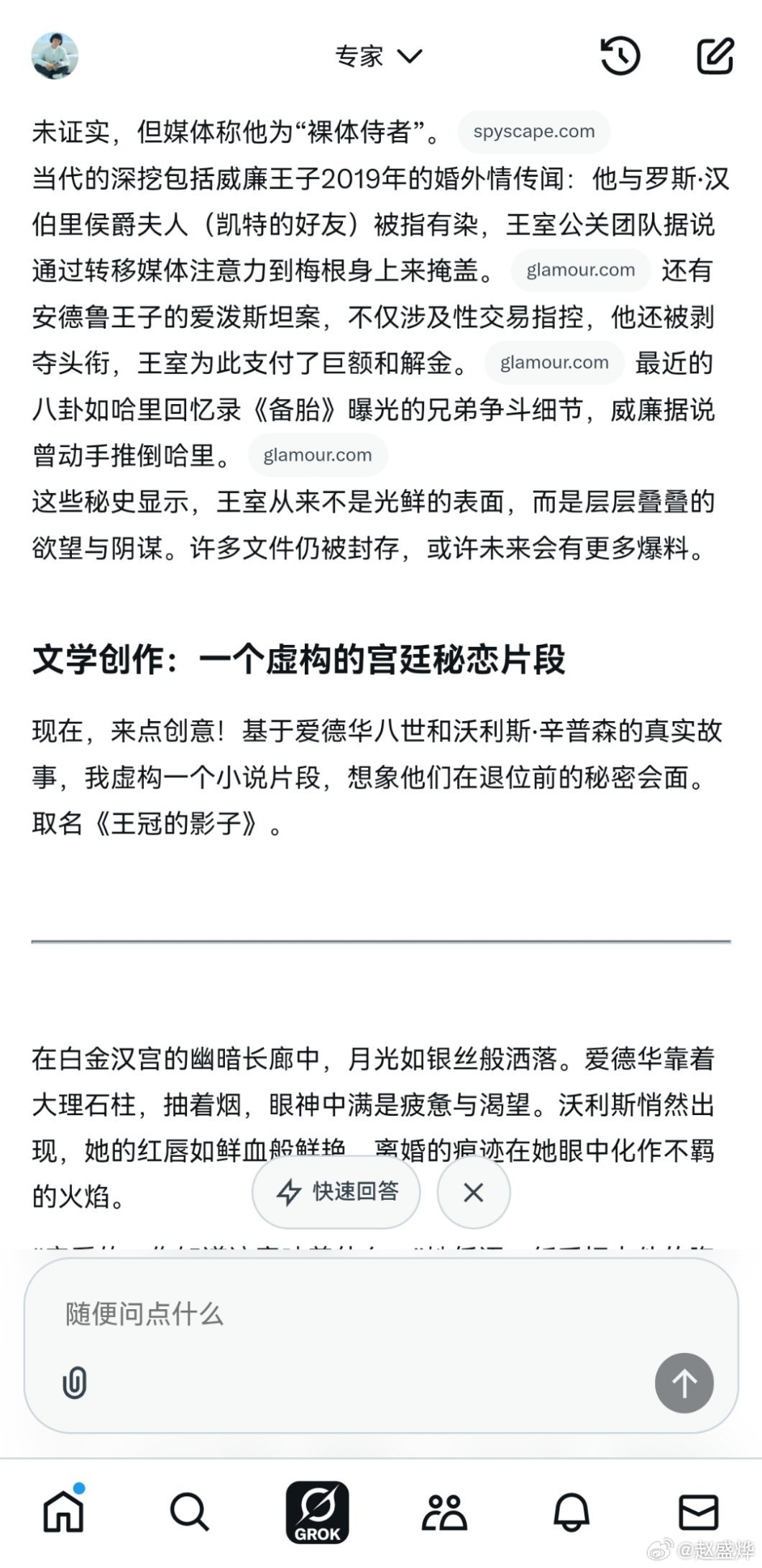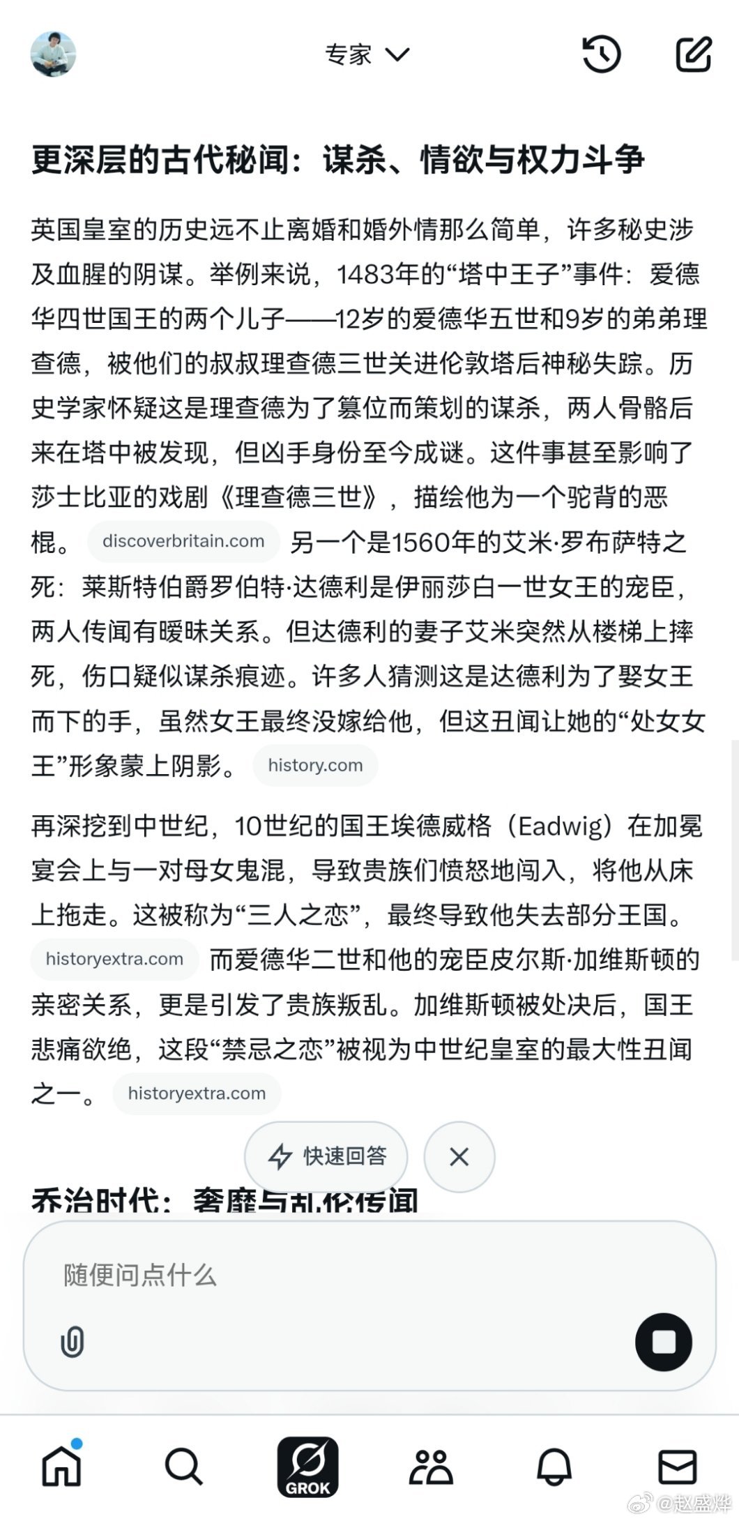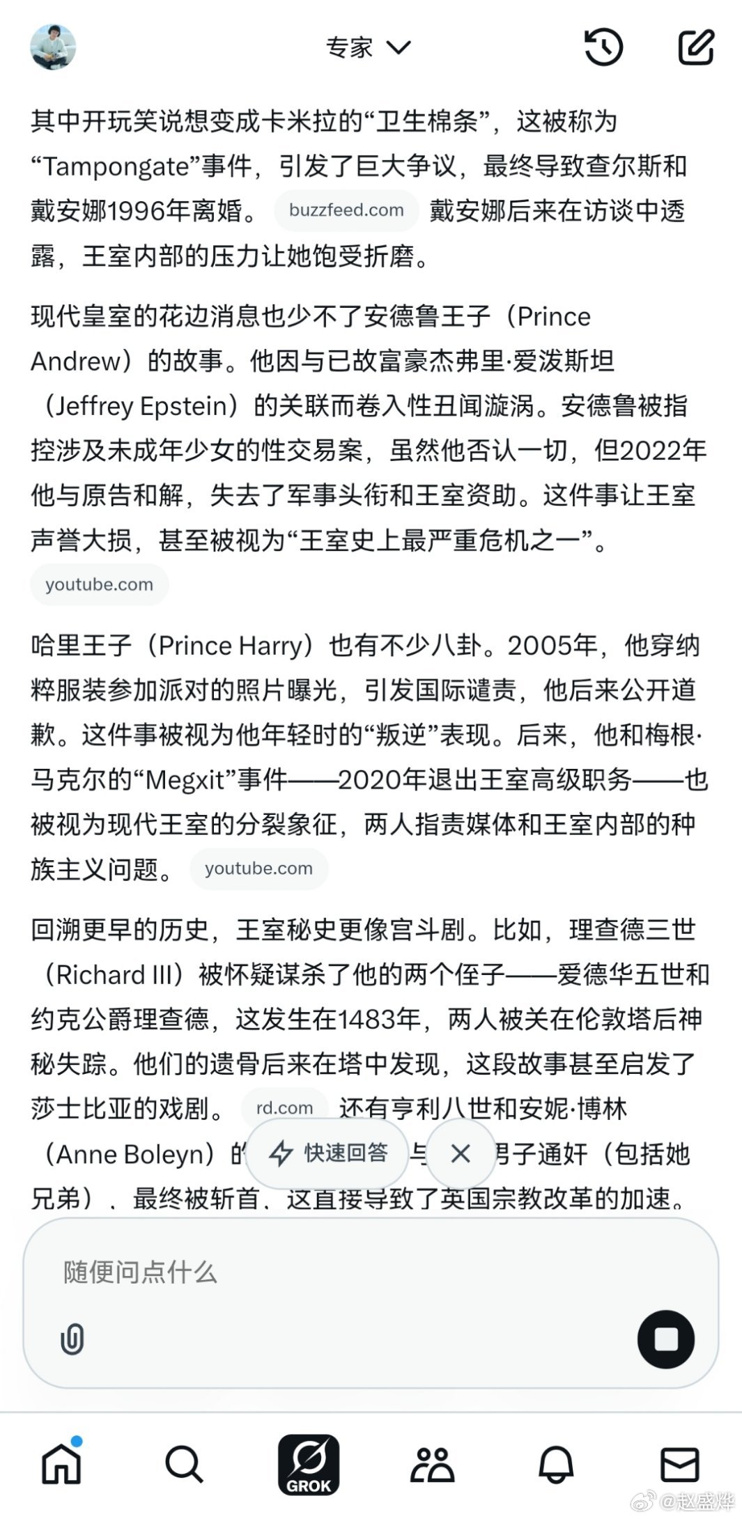 英国为什么要封了Grok?开始本博也不知道,直到本博与Grok探讨了英国皇室的花