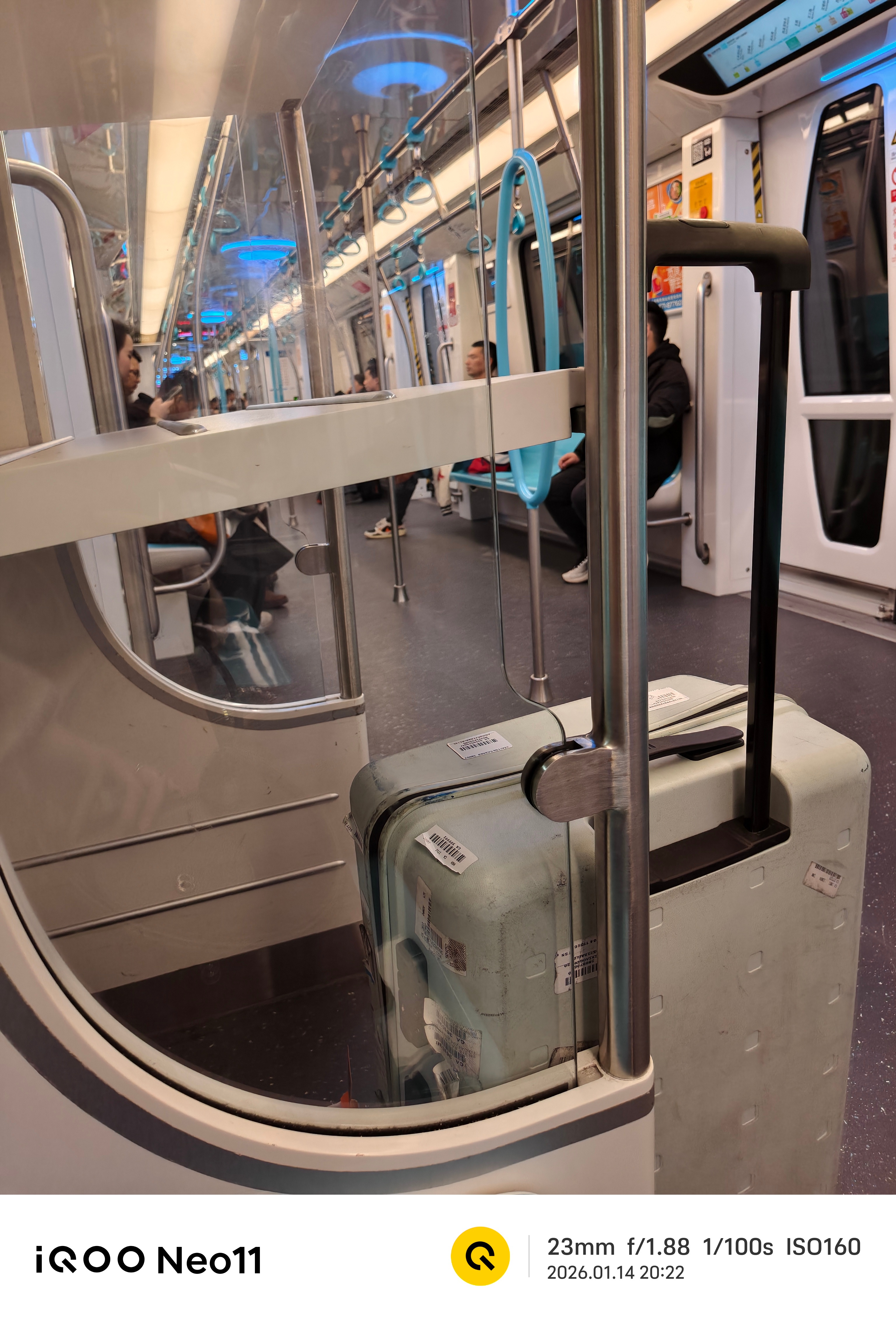 来了来了 这一段时间没有坐杭州地铁,发现地铁还有放行李的地方,这也太温馨了吧?明天见iQOO Z11 Turboiqoo期待和我手里的Neo 11 PK一下这个影像