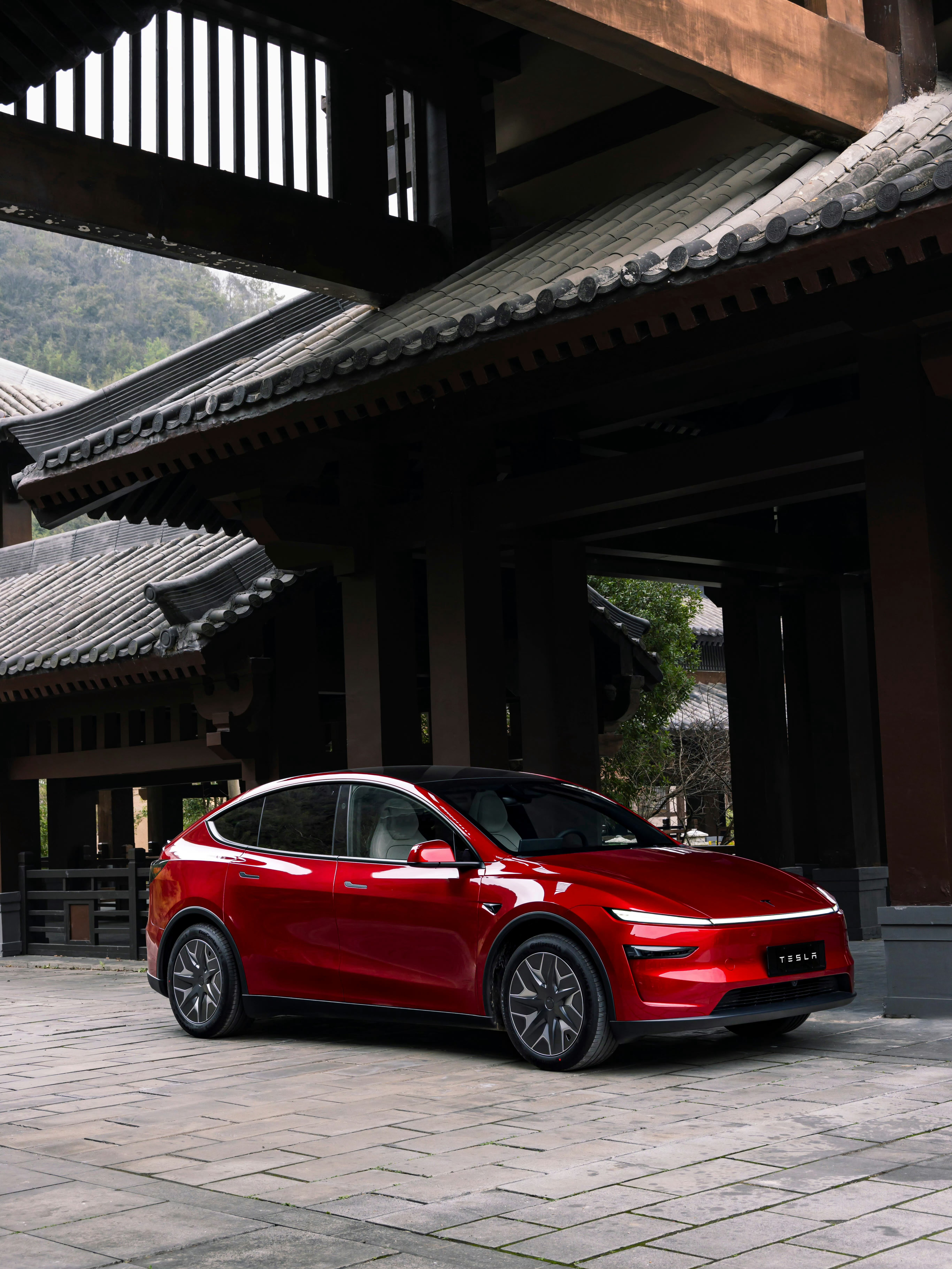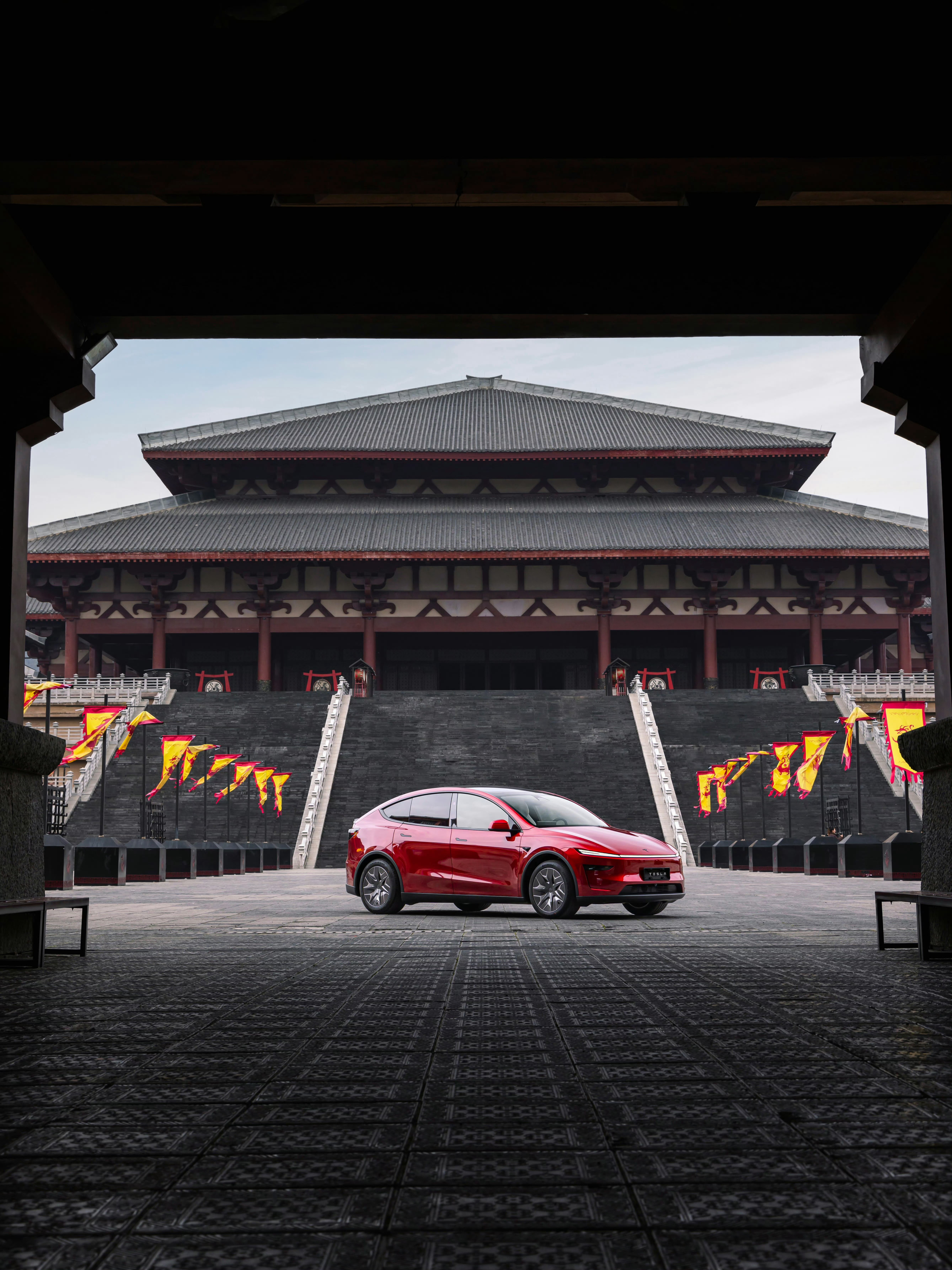 风起秦汉,Model Y L红影出城静如红玉,动若闪电⚡️轻踩加速踏板,赴一场古今之约和特斯拉发现出片秘诀 📸:📍:贵州都匀秦汉影视城
