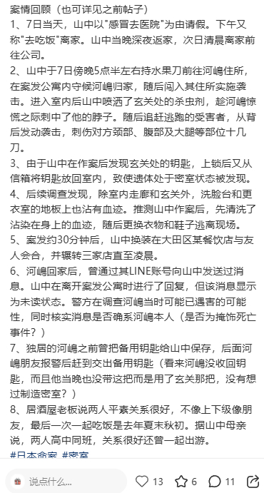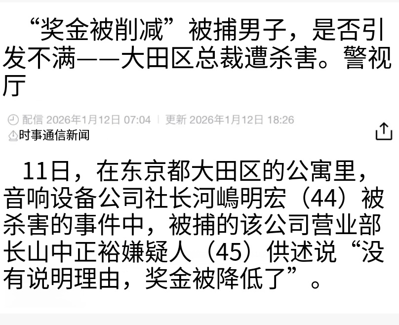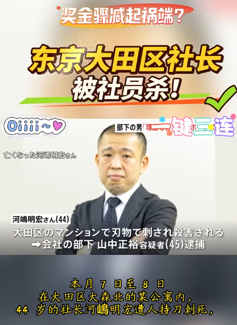 日本男子嫌年终奖发得少把老板杀了…两人曾是高中同学,被害人河嶋身中10多刀…他做梦都没想到,邀请老同学进自己的公司会惹来杀身之祸!远离低素质熟人圈,远离让你觉得不舒服的人,是一个人改变命运的最好方式。