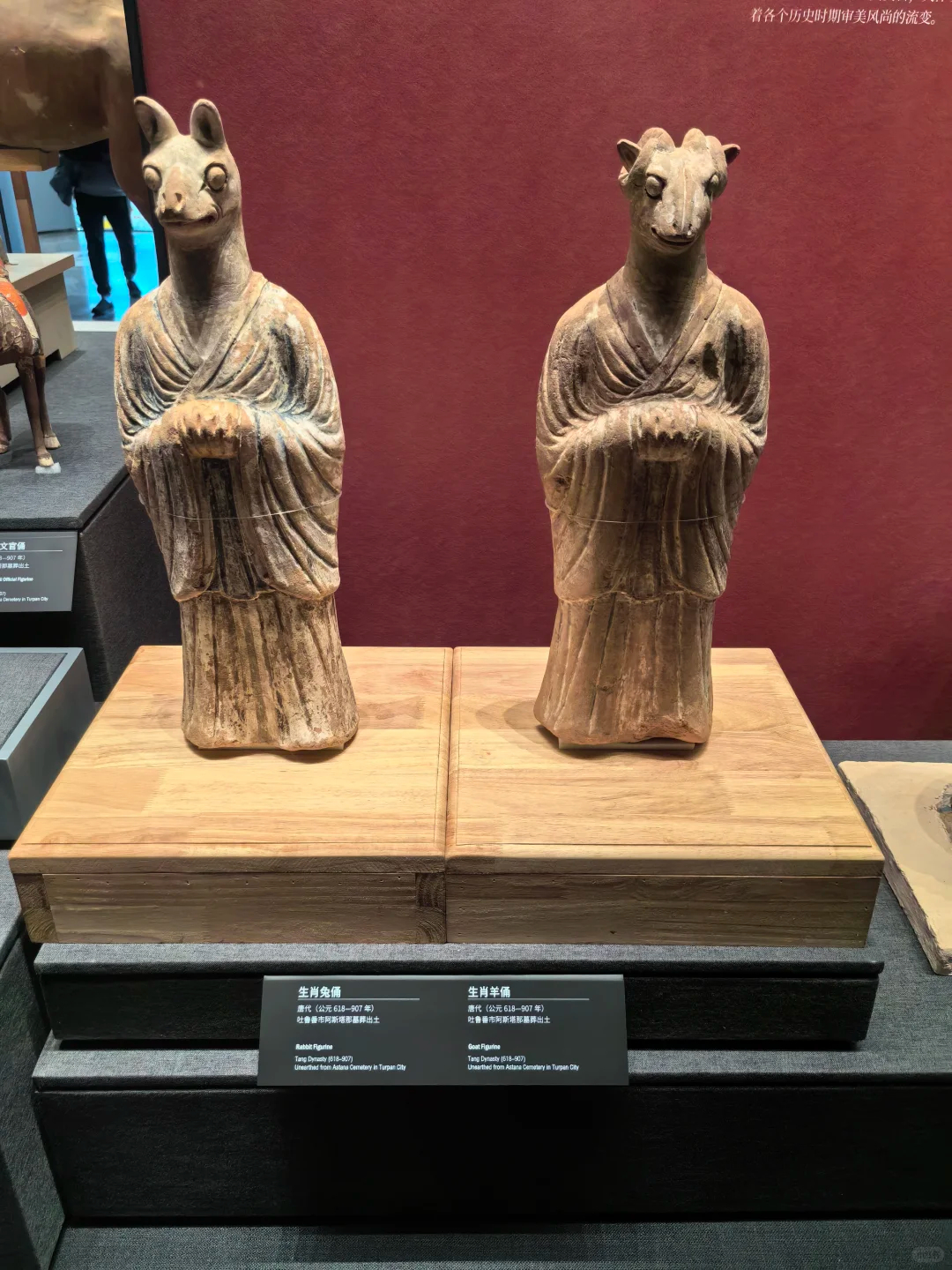 唐代的十二生肖俑不仅穿衣服,还是彩色的。它们兽首人身,身披长袍,双手执笏板放在胸