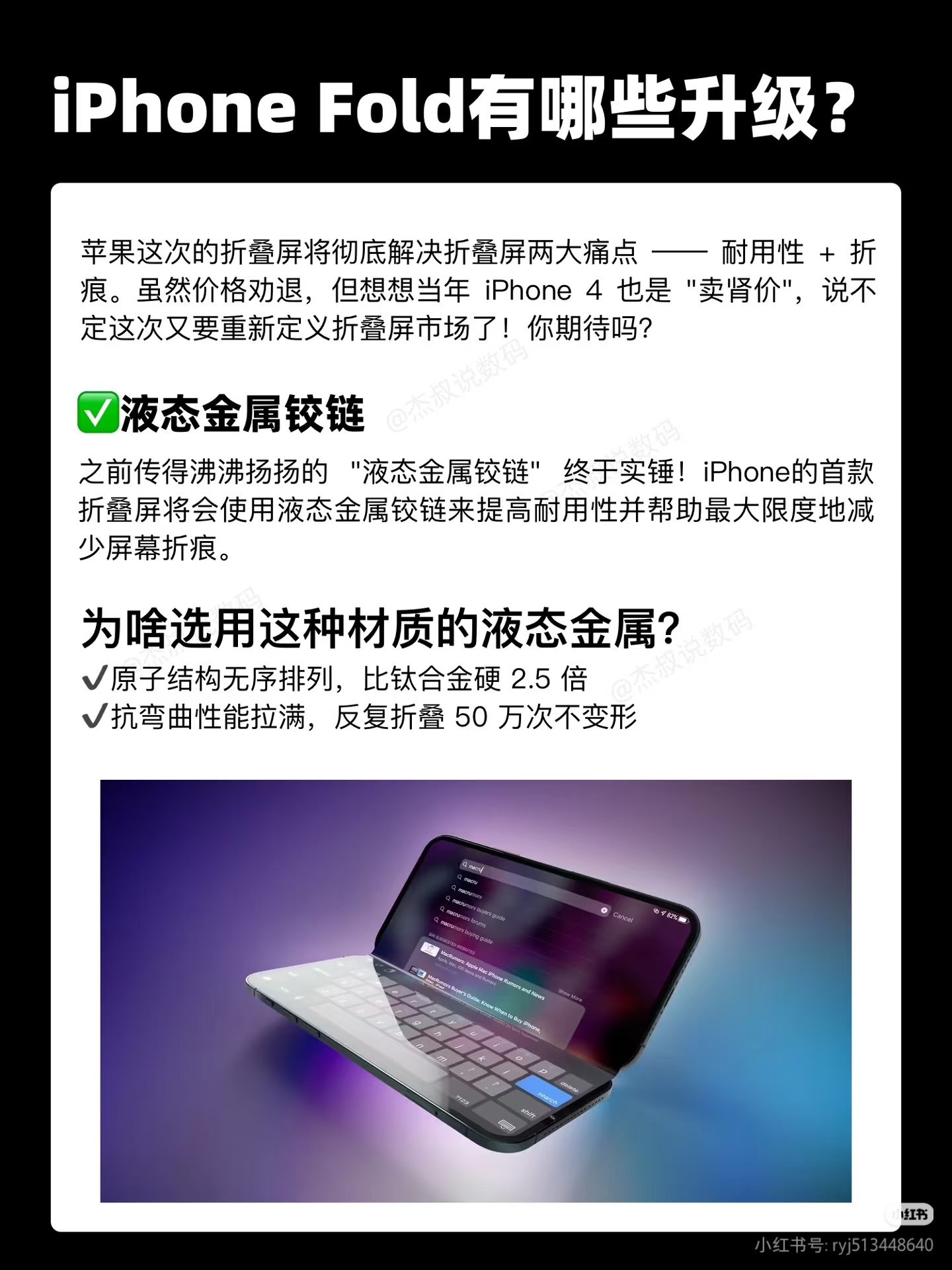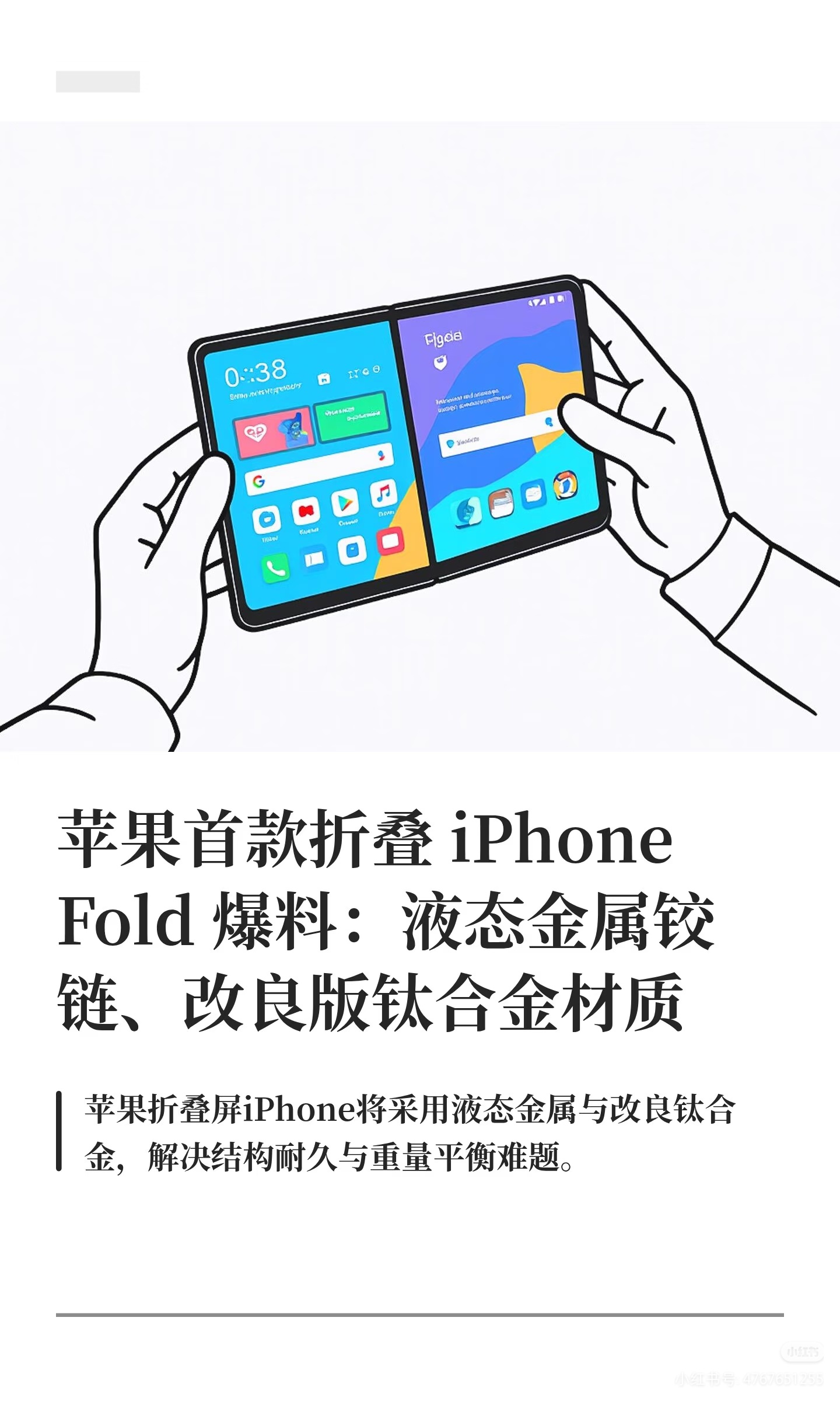 iPhoneFold再爆料液态金属铰链加上改良钛合金材质中框,更耐用更轻,更浅折