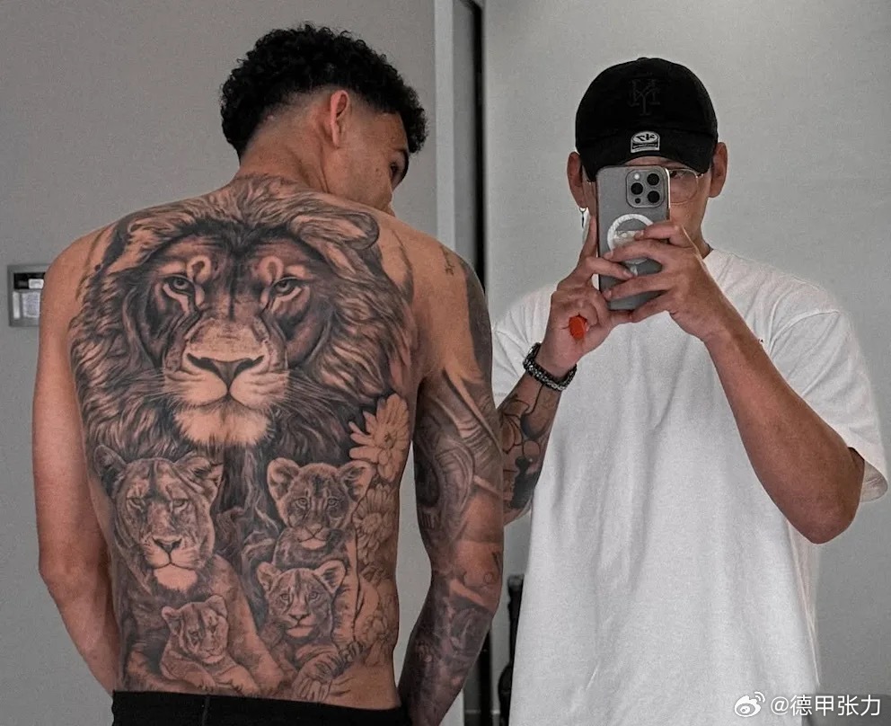 迪亚斯当初是看到努涅斯的纹身后,找到后者的纹身师斯通,并最终完成了狮子为主题的纹身梦想,献给自己的家庭(一共五只狮子,三只小狮子包括了即将出生的儿子)。纹身从2025年夏天之前就已经开始,当时迪亚斯还是利物浦球员。斯通已经来到迪亚斯家里6次,每次5个小时,还需要3到4次才能完成所有细节,加在一起需要40到50个小时。难点不仅是纹身图案的创意,也包括要确保迪亚斯的身体状态不受到影响,不能影响到他密集的比赛赛程,比如在迪亚斯转会拜仁前后,纹身工作也暂停一段时间。