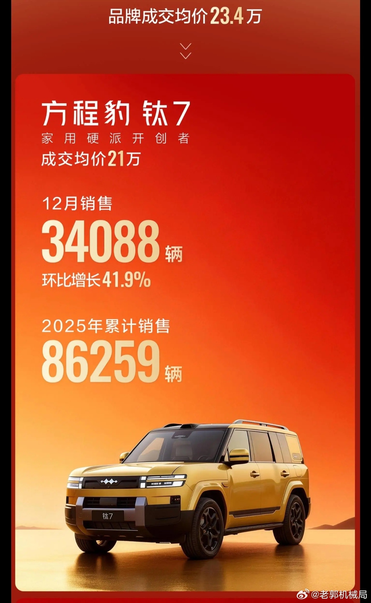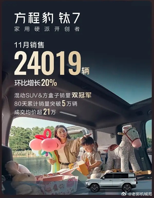 但凡在中国开车的基本都会相信这句话,有人说比亚迪之所以卖得好全靠价格低。2025年底的新势力销量榜,居然杀出这么一匹黑马!方程豹这牌子,原本只是比亚迪旗下的个性化品牌,结果靠着钛7直接杀疯了——10月卖2万+,11月冲2.4万+,12月狂卖3.4万+,三个月销量一路狂飙!更狠的是,这台车均价超20万,而且90%的车主都直接冲高配!要知道顶配才21.98万,却能拿到激光雷达、四驱4.5秒破百、1300公里综合续航这些硬核配置。就靠钛7的爆发,方程豹12月销量破5万,一举冲到新势力第三,仅次于鸿蒙智行和零跑,把咱们熟悉的蔚小理都甩在了身后!这哪是什么小众个性牌,分明是比亚迪下的一盘大棋——当其他新势力还在纠结性价比和高端化时,方程豹已经用一款车撕开了市场的大口子!文 张国成
