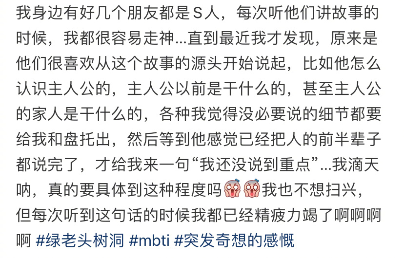 感觉N人没办法听S 人讲故事