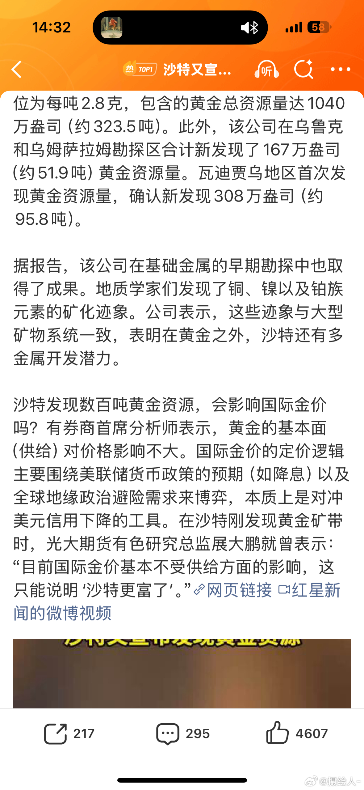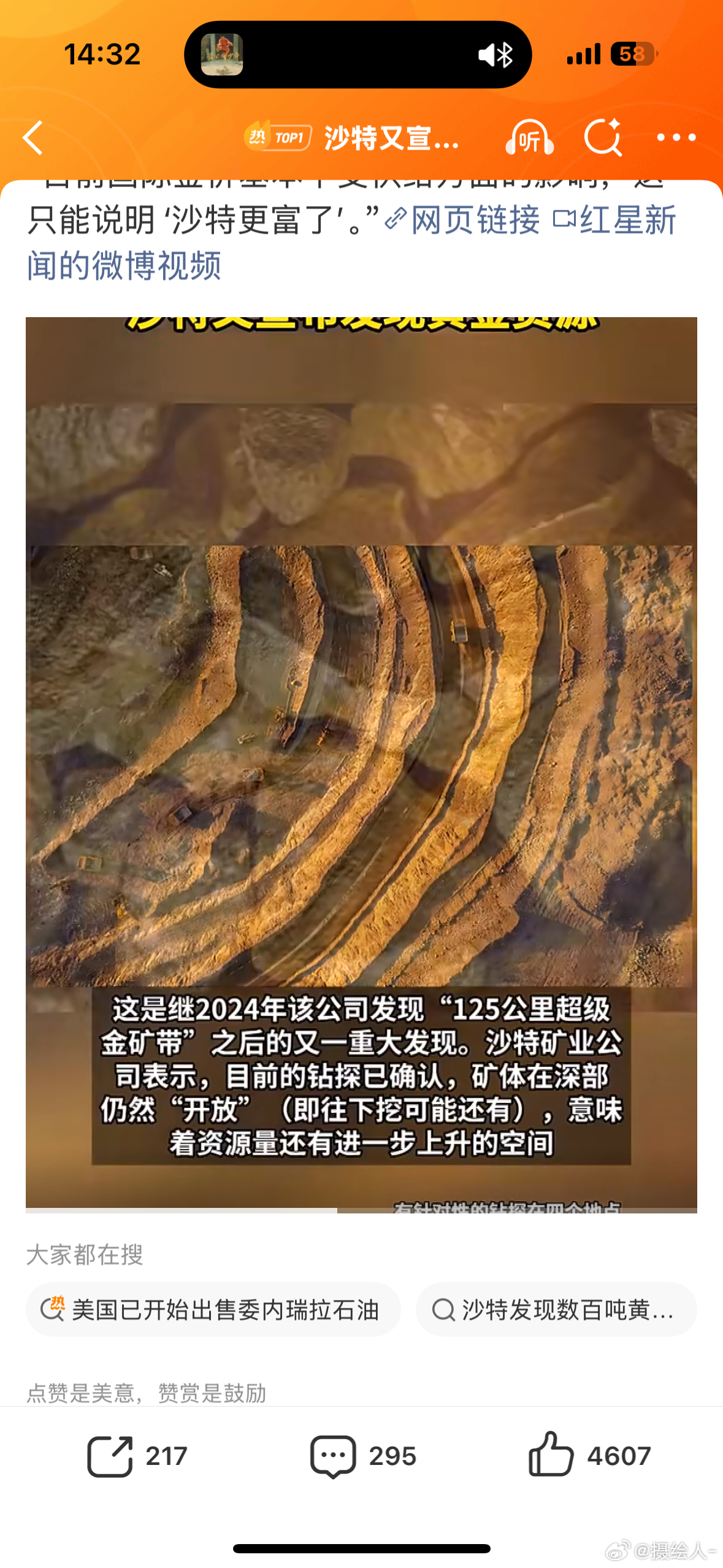 沙特又宣布发现黄金资源原本富裕的家庭更加不堪重富,我想他们每天一睁眼就有花不完的