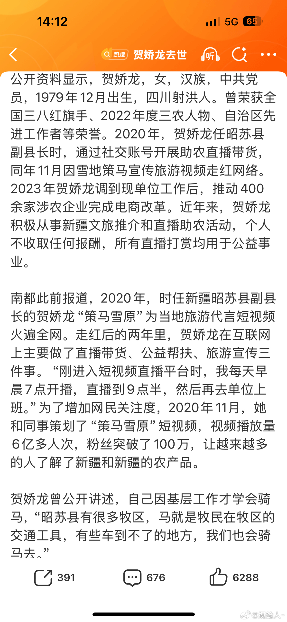 贺娇龙遗体已回到昭苏她把所有的流量献给了新疆,而不是给自己,真的是太突然了,一路走好