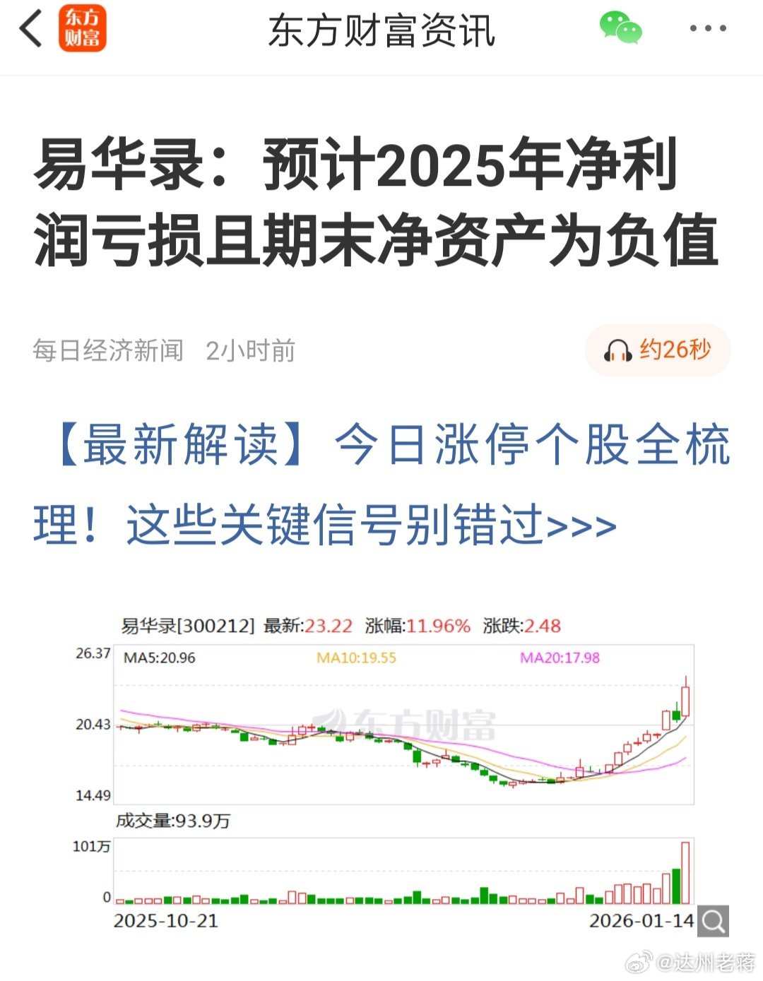 A股 易华录啊,业绩为负,净资产为负。大概率年报出来后要被*st了。都一月中旬了