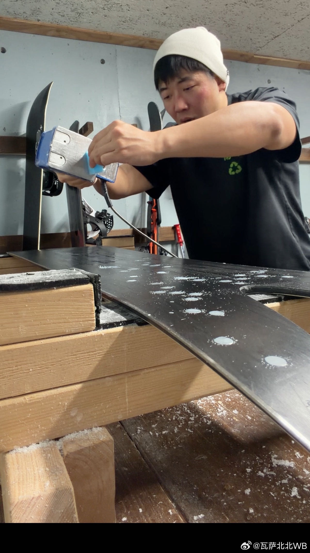 第一个酒店,我们滑完雪拿回寄存的包,顺手去拿冰箱里自助的水,老爷爷说:我们退房了,不再享受服务,无法拿水第二个酒店,我看到了一个滑雪工作台,打蜡工具特别齐全,我问蜡可以用吗,前台说随便用,于是我拿起同行小伙伴们的板子练练手听说这里打蜡修刃500多一块