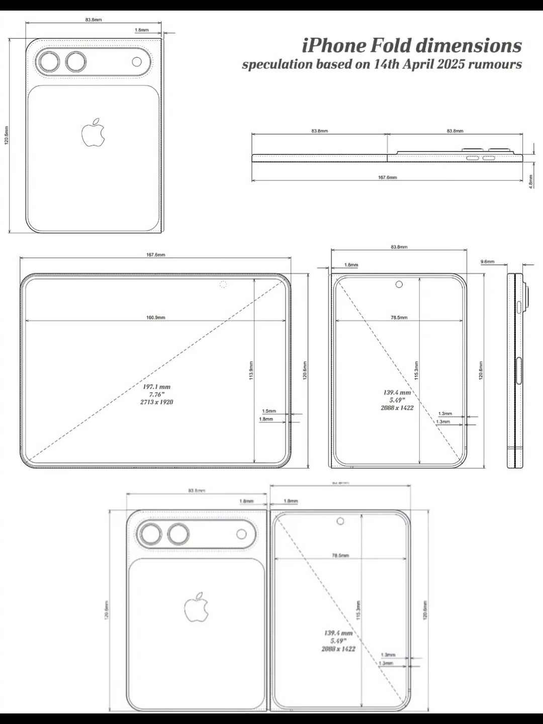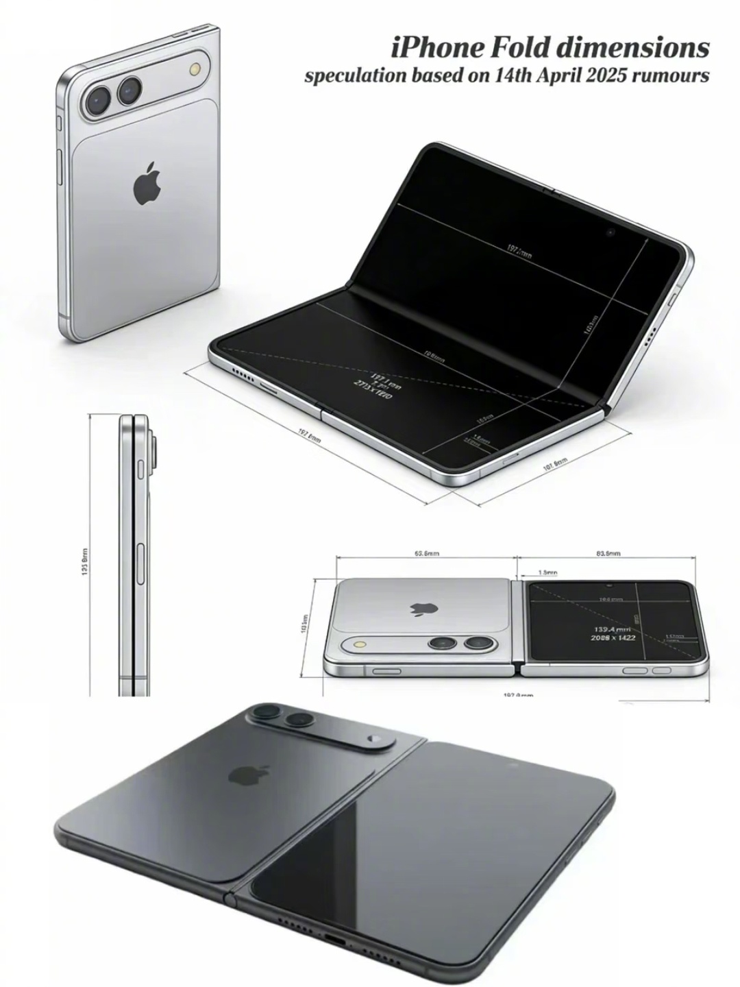 这就是 iPhone Fold?苹果折叠屏的终极想象!苹果折叠屏真机渲染首曝,Tech God基于最新数据制作高清图集,揭开新机面纱。双屏形态:5.5寸外屏+7.8寸内屏,小巧精致至薄机身:展开4.8mm,折叠约9.6mm! 材质拉满:抛光钛金属中框 + 全新超磁晶玻璃。铰链革命:液态金属技术,目标“无折痕”!经典双色:永恒黑白,简约即高级。消息称,距离发布仅剩9个多月,苹果折叠屏,这次真的稳了?你期待吗?