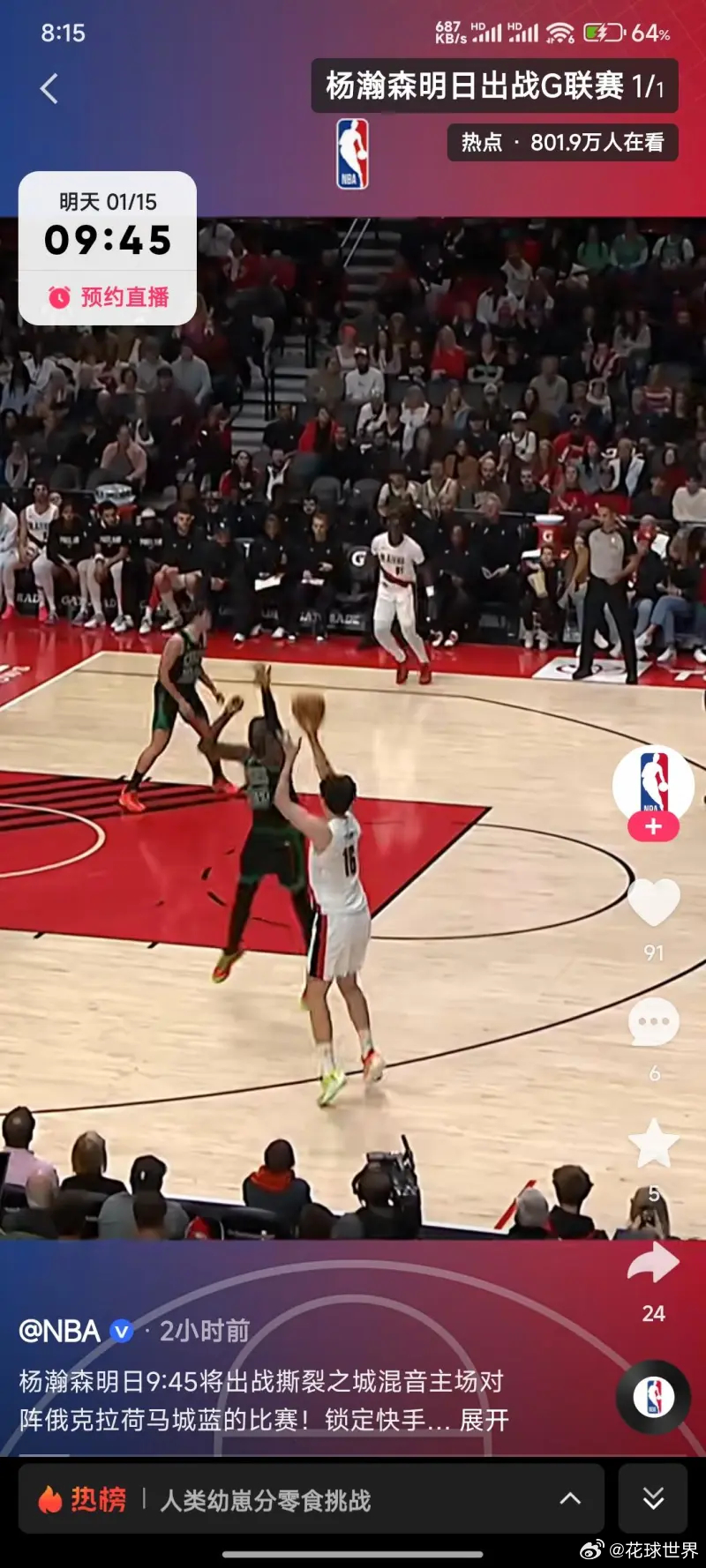 明天天上午10点,杨瀚森有可能主场出战发展联盟的比赛海外中国球员