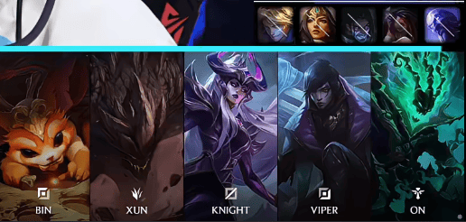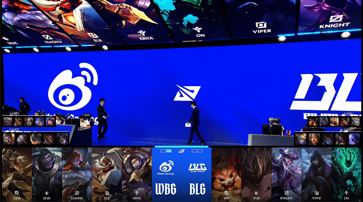 BLG选用:Bin纳尔;Xun石头人;Knight辛德拉;Viper厄斐琉斯;ON锤石