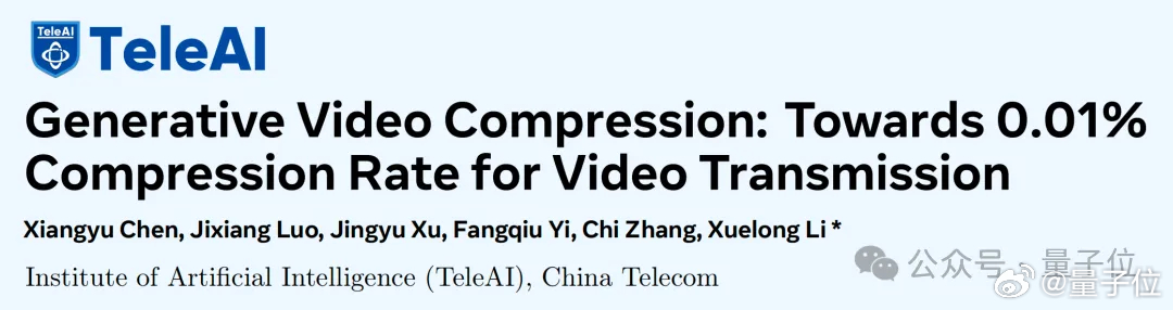新技术把视频压缩到了0.02%在海上能看世界杯直播了 感谢AI!原生1个G的视频,现在只需要传200K数据就能看了——视频数据的压缩率干到了0.02%,但依旧能保持画面的高清、连贯和画面细节。或许你会问,这又有什么用呢?想象一下,你身处于太平洋的一搜远洋货轮中,卫星信号只有一两格,刷个朋友圈,加载内容的圈圈都要转好久。但正是因为有了这项AI技术,现在在如此极端的环境之下,你甚至可以直接看高清的世界杯直播!【图1】没错,视频传输的物理法则,算是被重写了。而这项新研究,正是来自中国电信人工智能研究院(TeleAI)的技术——生成式视频压缩(GVC,Generative Video Compression)。作为国资央企、全球领先的综合智能信息服务运营商,中国电信不仅拥有覆盖海陆空天的通信网络基础设施,更具备将前沿AI技术与实际通信场景深度融合的能力。这种“云网融合+AI原生”的独特优势,使得GVC技术从实验室走向远洋船舶、应急现场等真实极端环境成为可能。【图2】那么这项研究到底是如何做到的,以及又能给我们现实生活带来什么改变,我们继续往下看。网页链接
