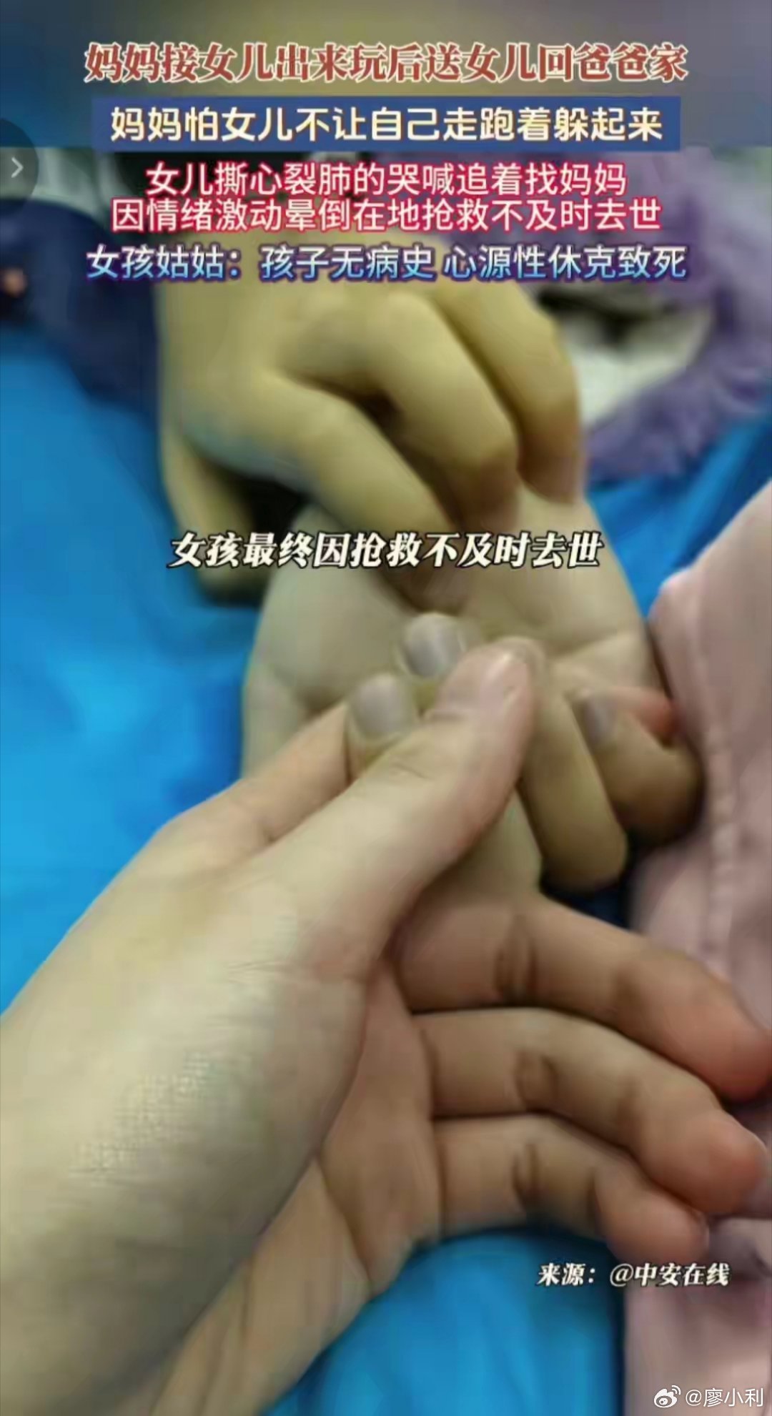 母亲躲藏致女儿心源性休克身亡大悲大痛之下导致心源性休克,这大概就是传说中的“伤心死了”。这一幕看哭无数人,可怜的小女孩,只为守住母爱的温度,用尽力气,也抓不到,最后躺在冰冷冷的地上。最后一刻,一定是眼含泪水,孤独绝望啊!热点观点